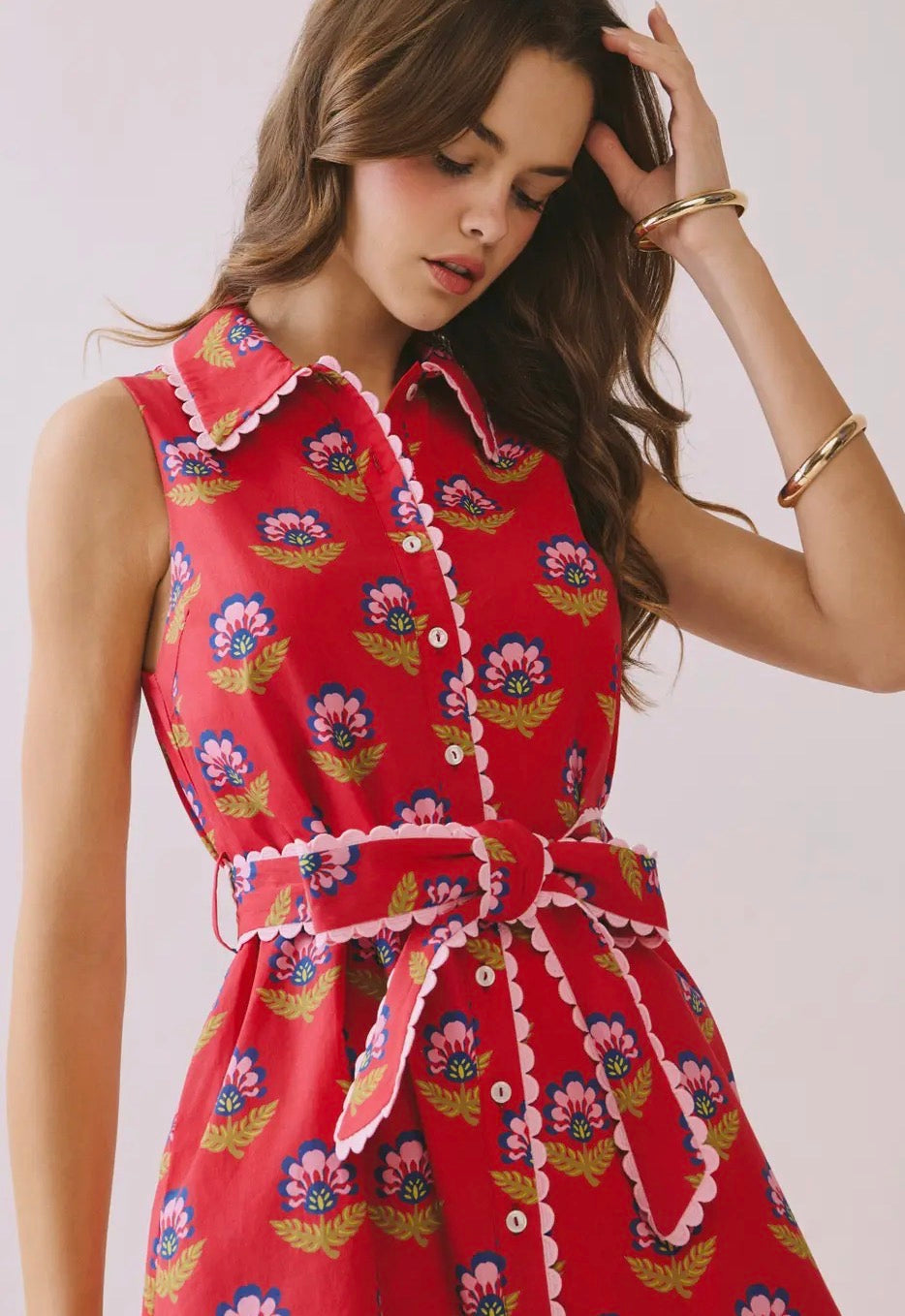 Printed perfection! Our Anya Dress in Red is as cute as it is comfortable. We love the allover floral block print on this, complete with an a-line silhouette. Pair this with your favorite flats or wedges and add some dainty jewels to complete the look – an easy option for upcoming get-togethers, weekend plans, and more.