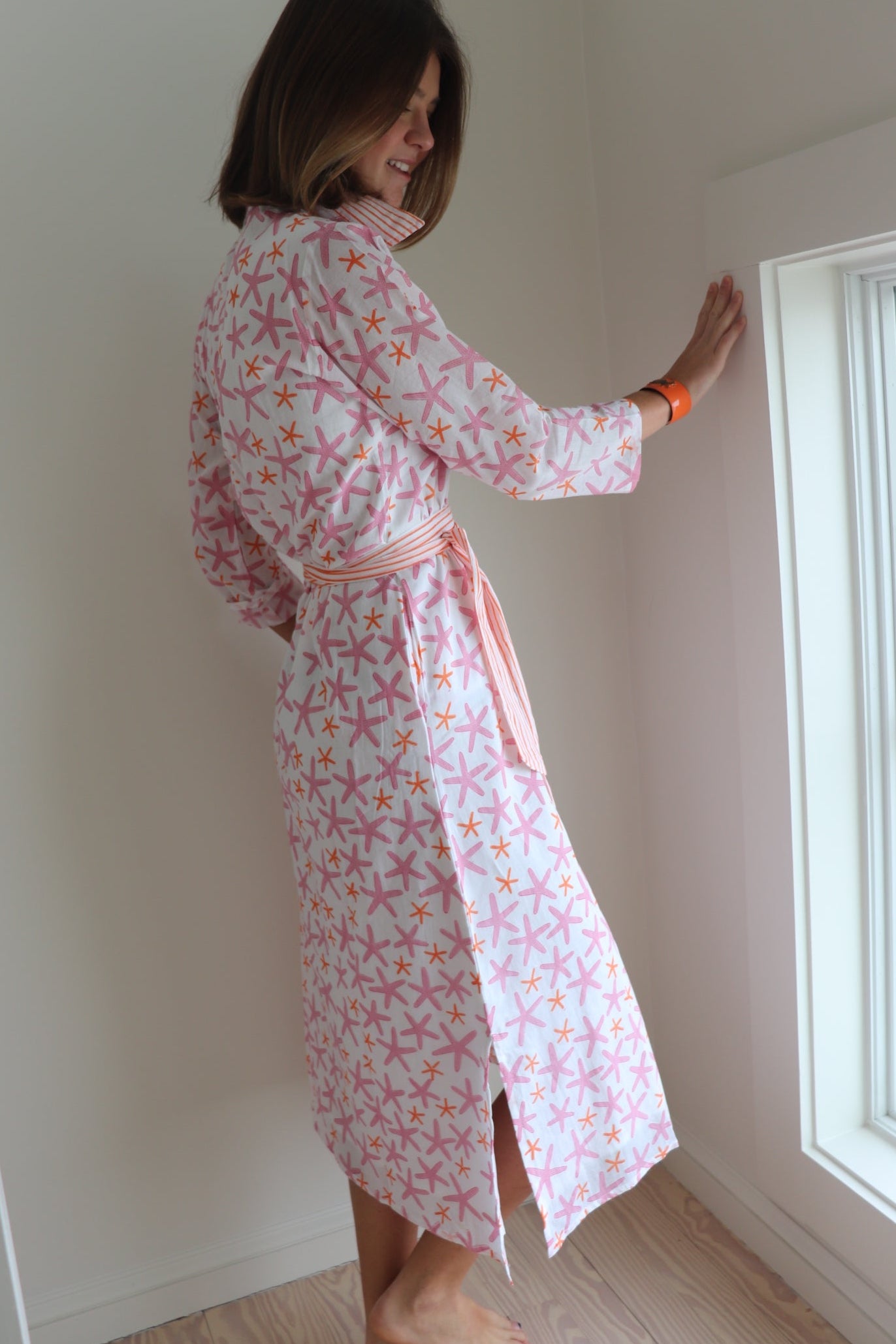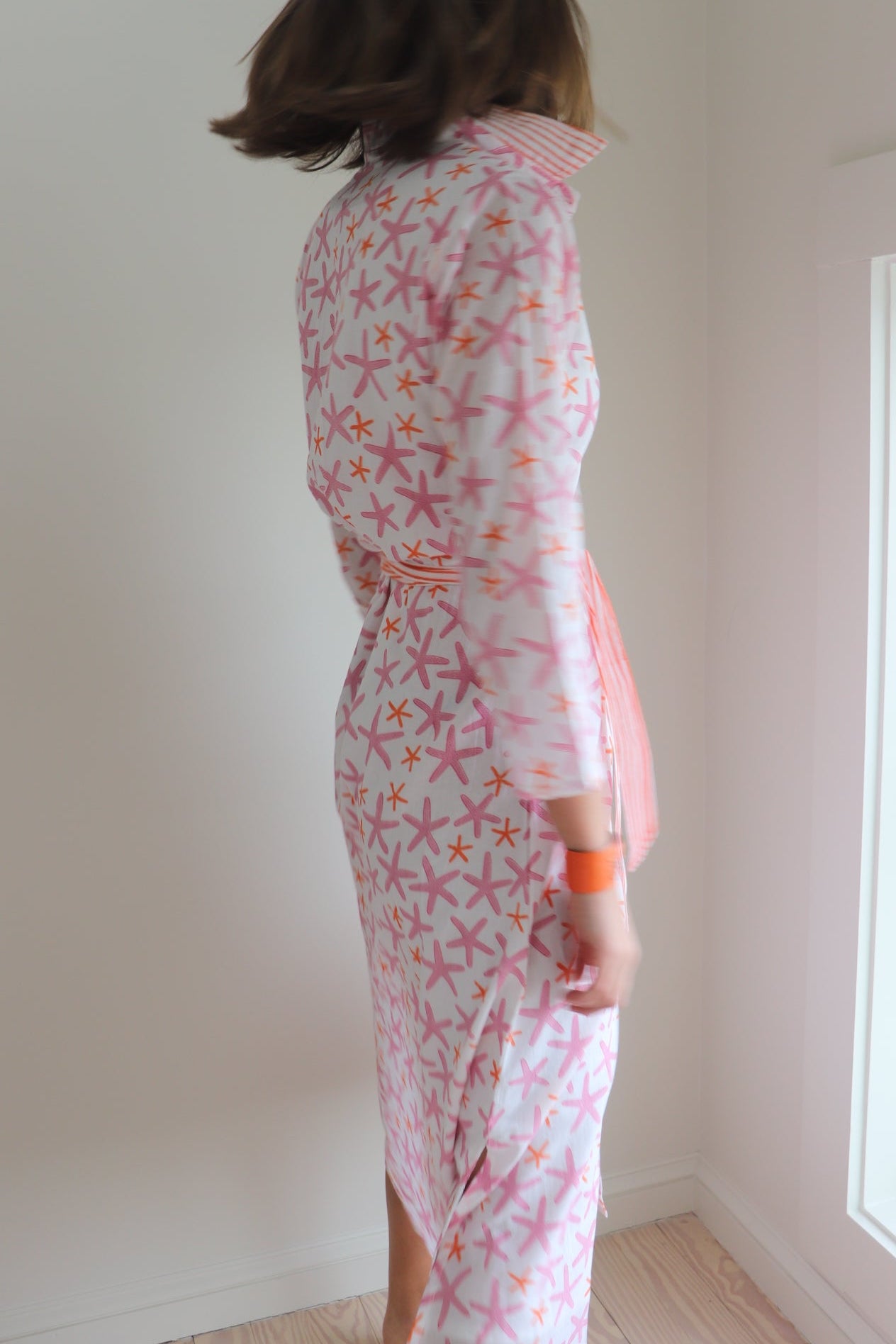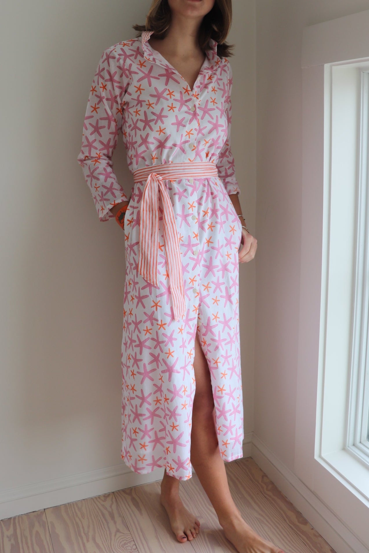 Pink Pineapple exclusive - 100% hand blocked cotton, fully lined, front button placket, slight A-line silhouette for an easy, carefree fit with a classic look. And of course with easy side seam pockets and matching sash - Weather your looking to cover up at the beach or dress it up for lunch at the club and of course 4th of July this dress is a MUST