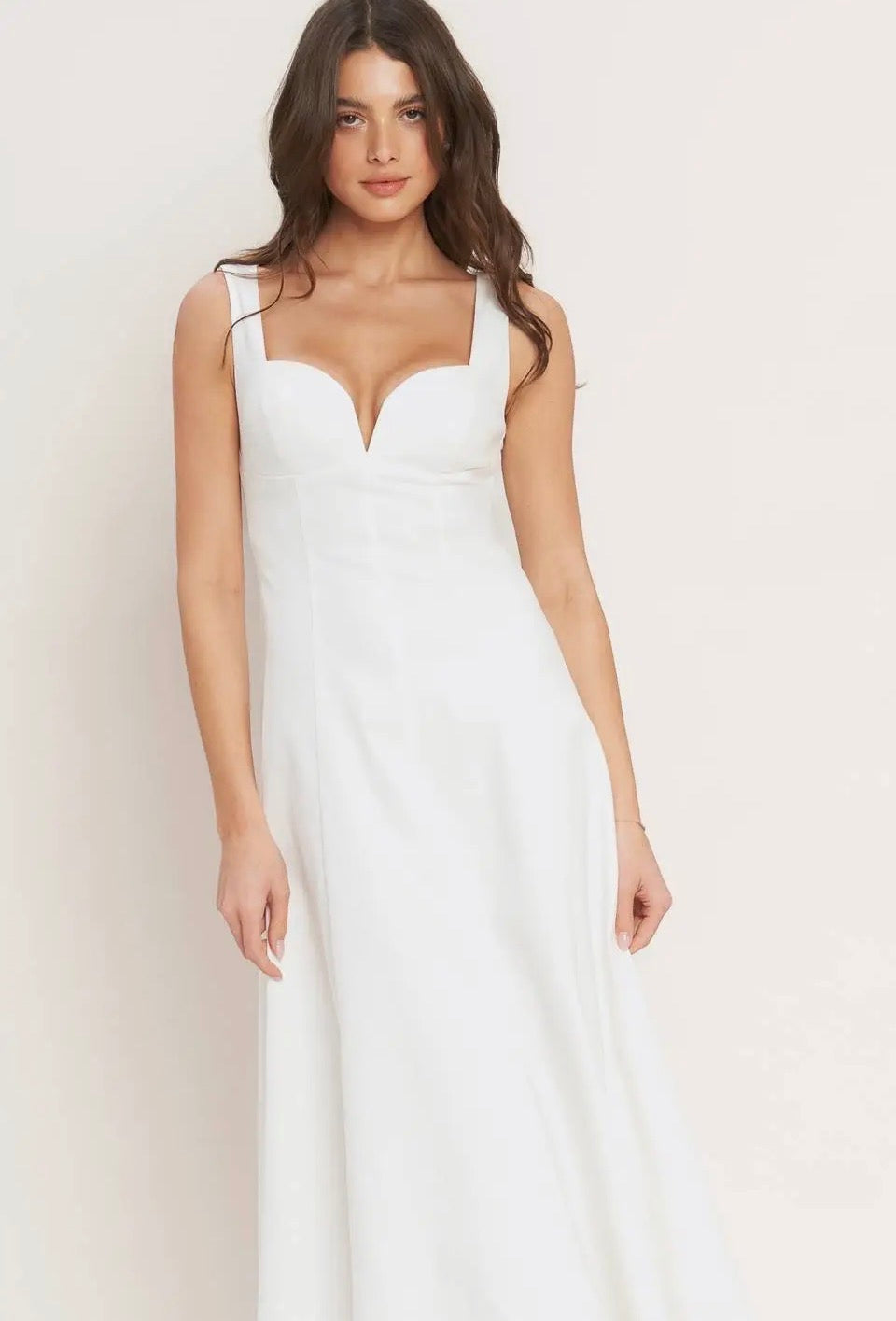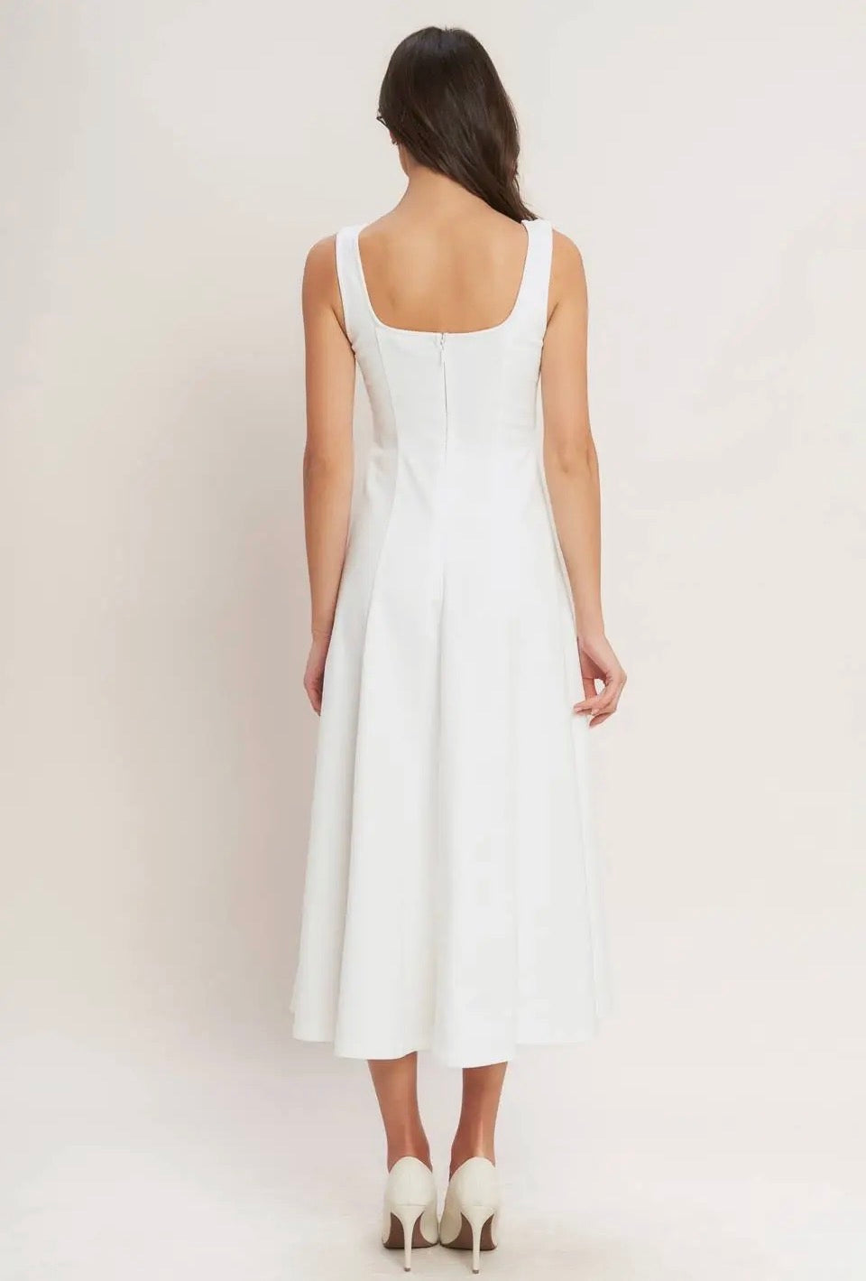 Solid white woven midi dress