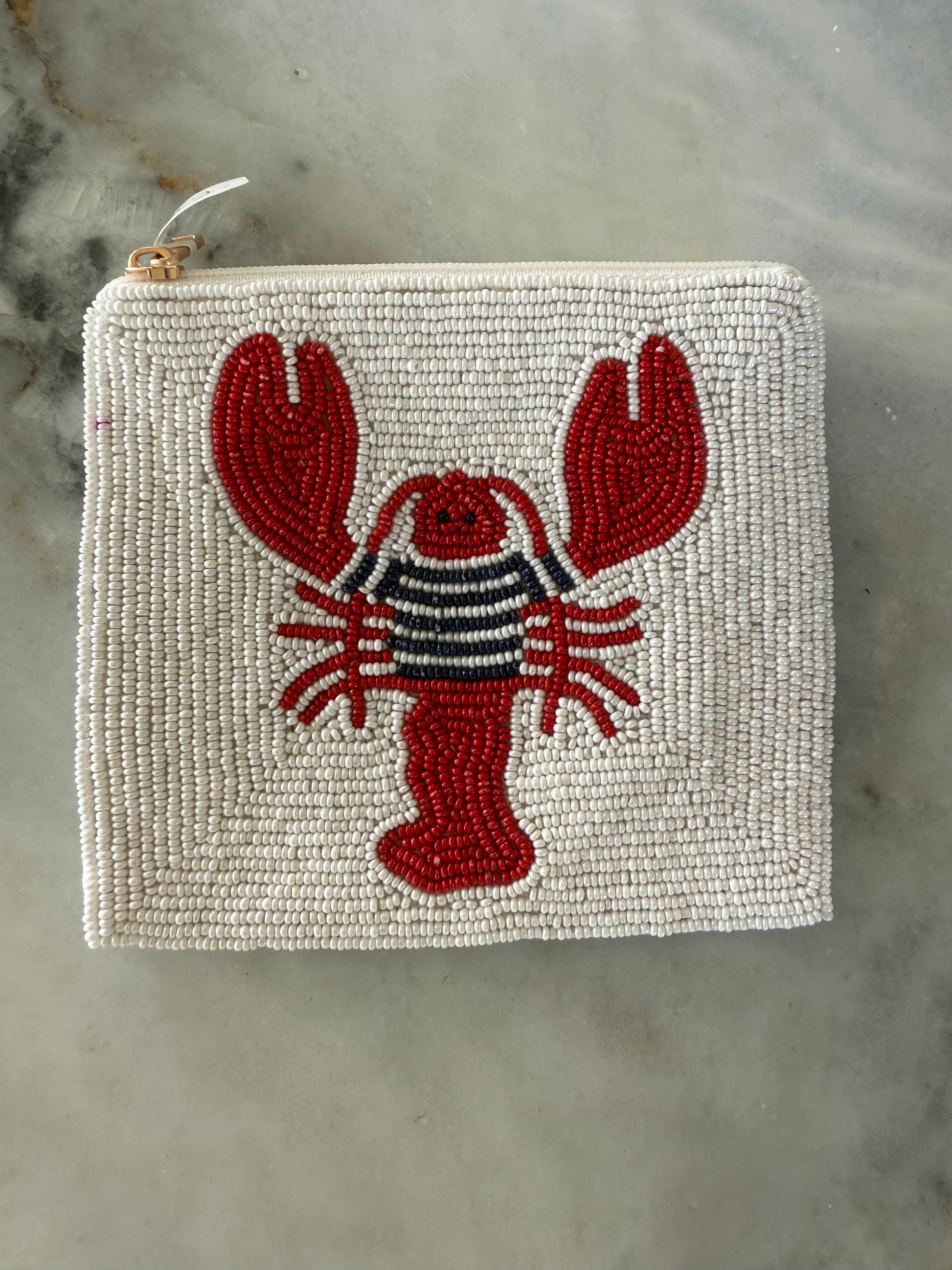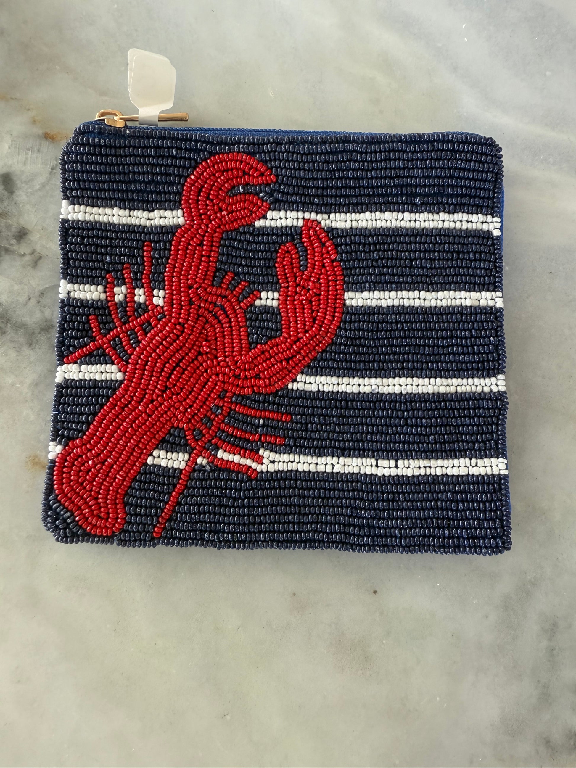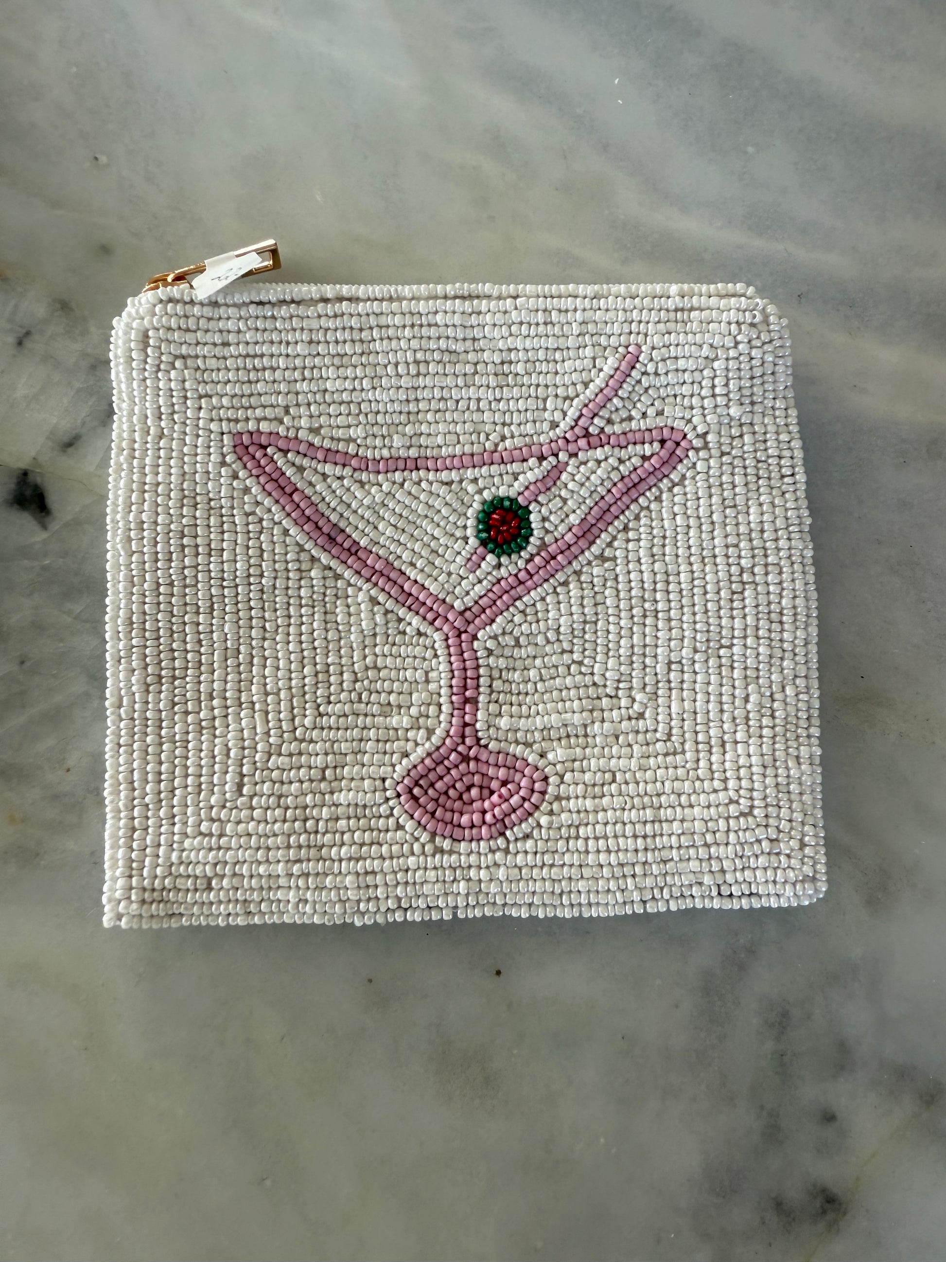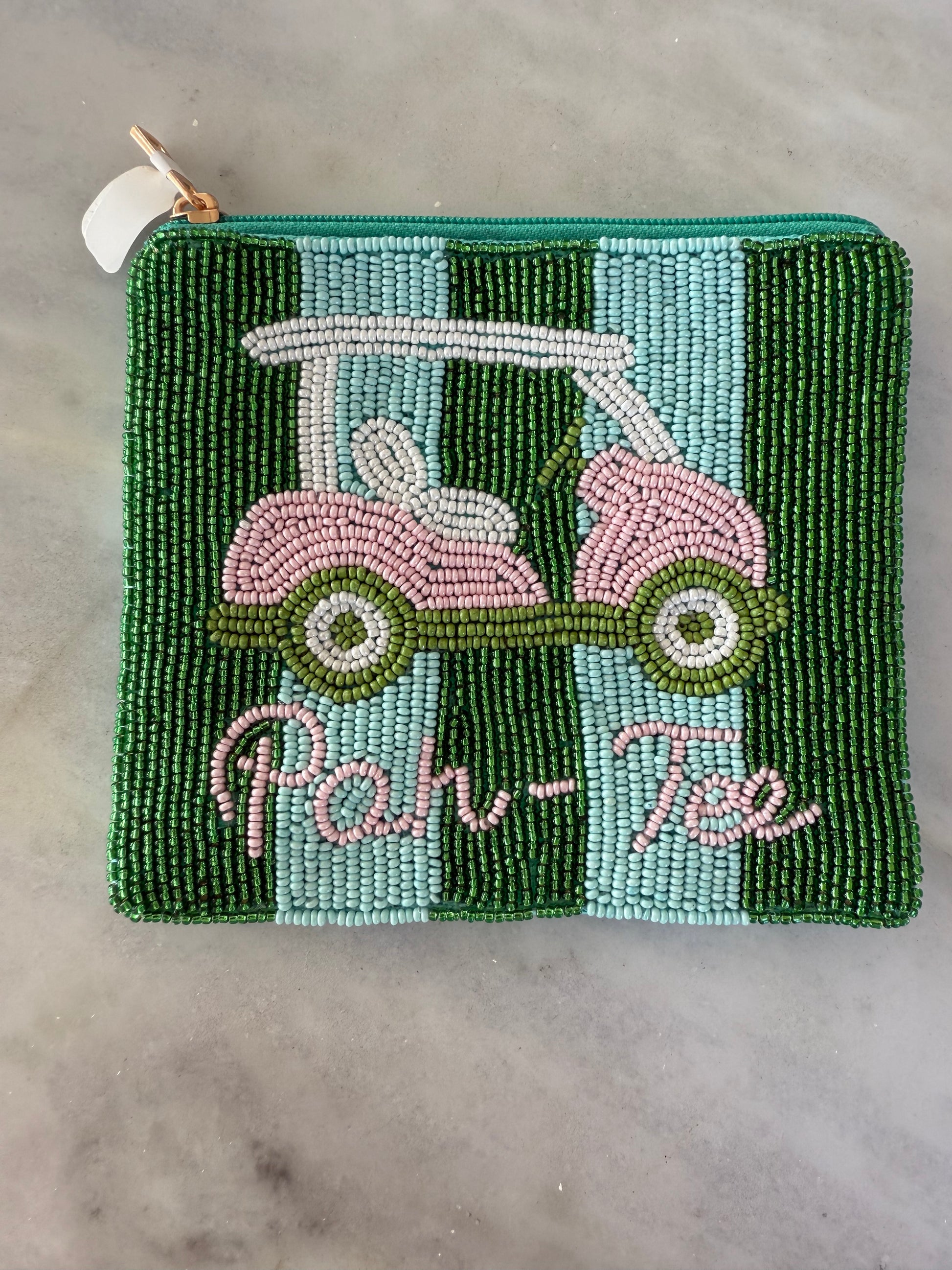 Beaded coin, purses, beat it on one side fabric on the other. Custom-made for Pink Pineapple to match our sweaters!