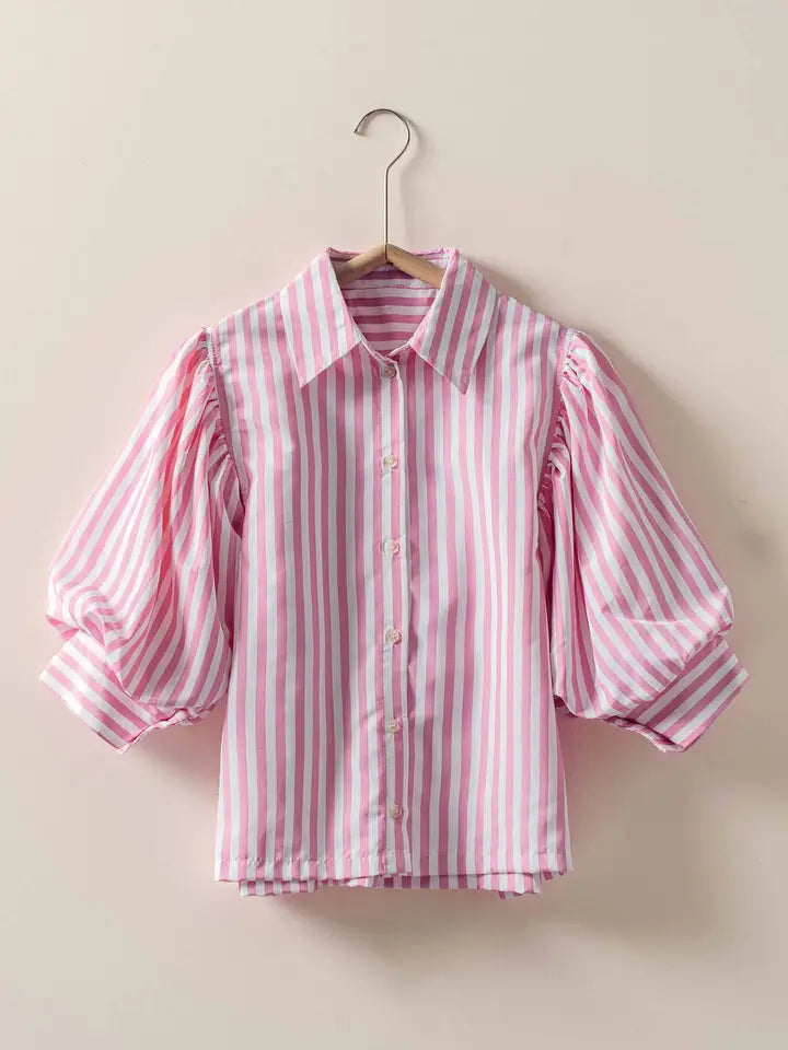 Boho Puff Sleeve Striped Blouse in Pink or Ivory