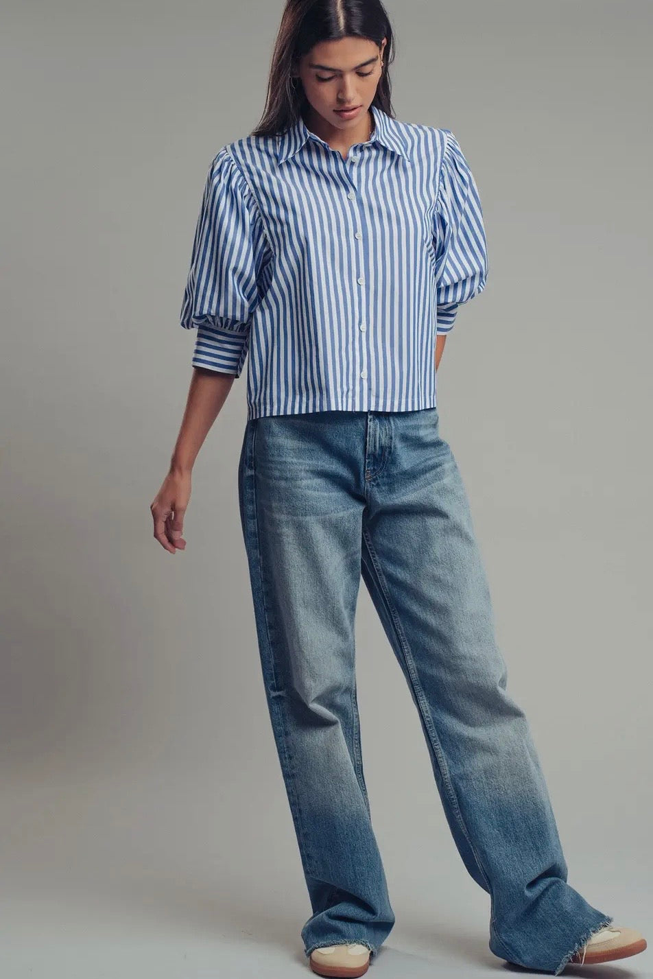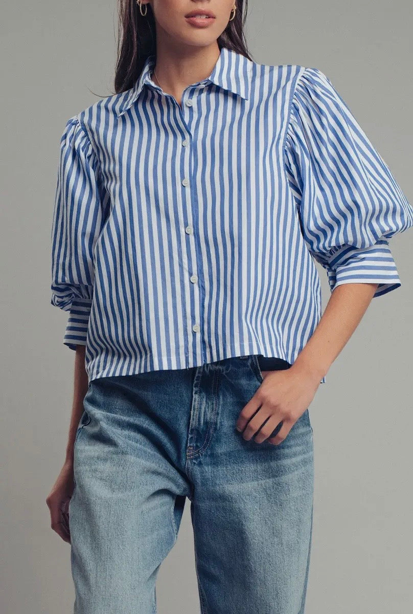 Boho Puff Sleeve Striped Blouse in blue