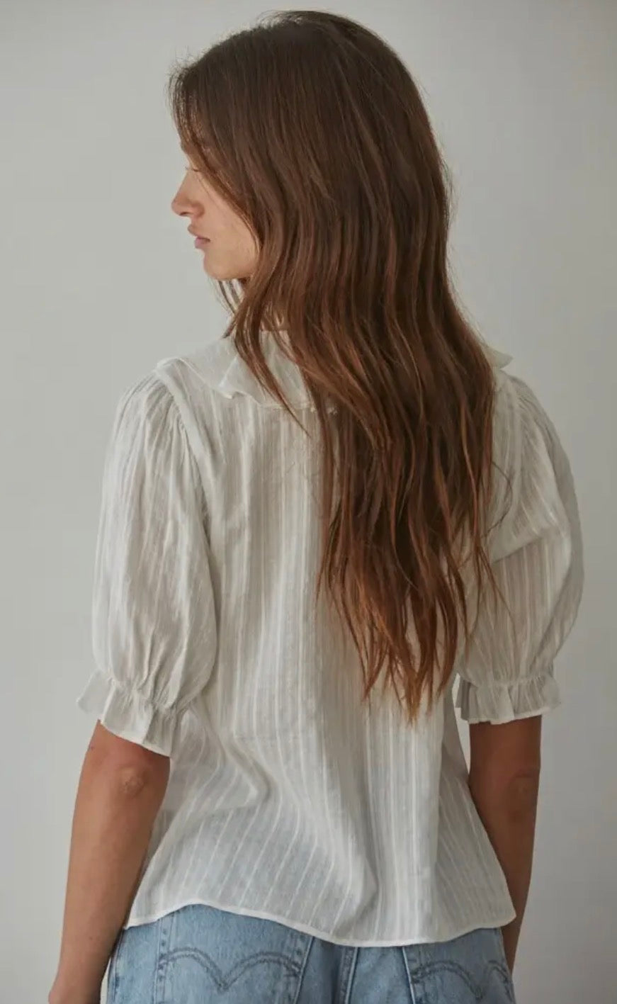 Discover the Chloe Shirt in a soft lightweight cotton textured . Designed with a voluminous silhouette, she features timeless, feminine details — a delicate ruffle neckline, and petit pin-tucks — blending comfort with thoughtful design. A true everyday staple, the Chloe Shirt moves seamlessly from day to night and layers beautifully throughout the year.
