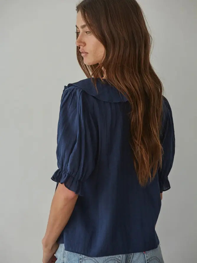 Chloe Pintuck Ruffle Blouse Navy