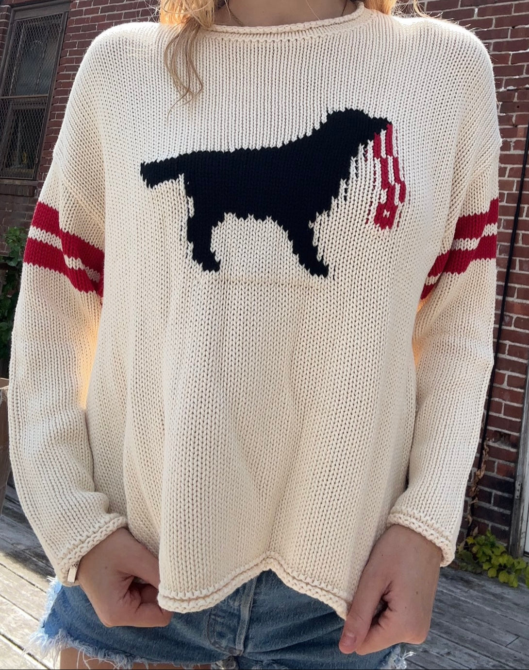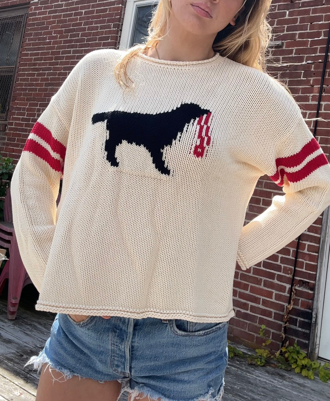 Our Campus Dog Sweater is now available in our favorite Chloe Roll Neck! Our NEWEST addition to the Pink Pineapple Classic Collection. We LOVE this Dog motif on our 100% Cotton roll neck style sweater!