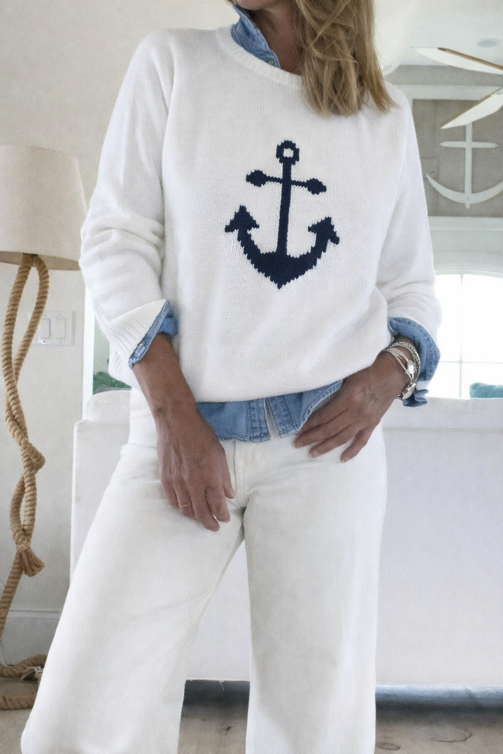 Chunky Campus Anchor Sweater in White