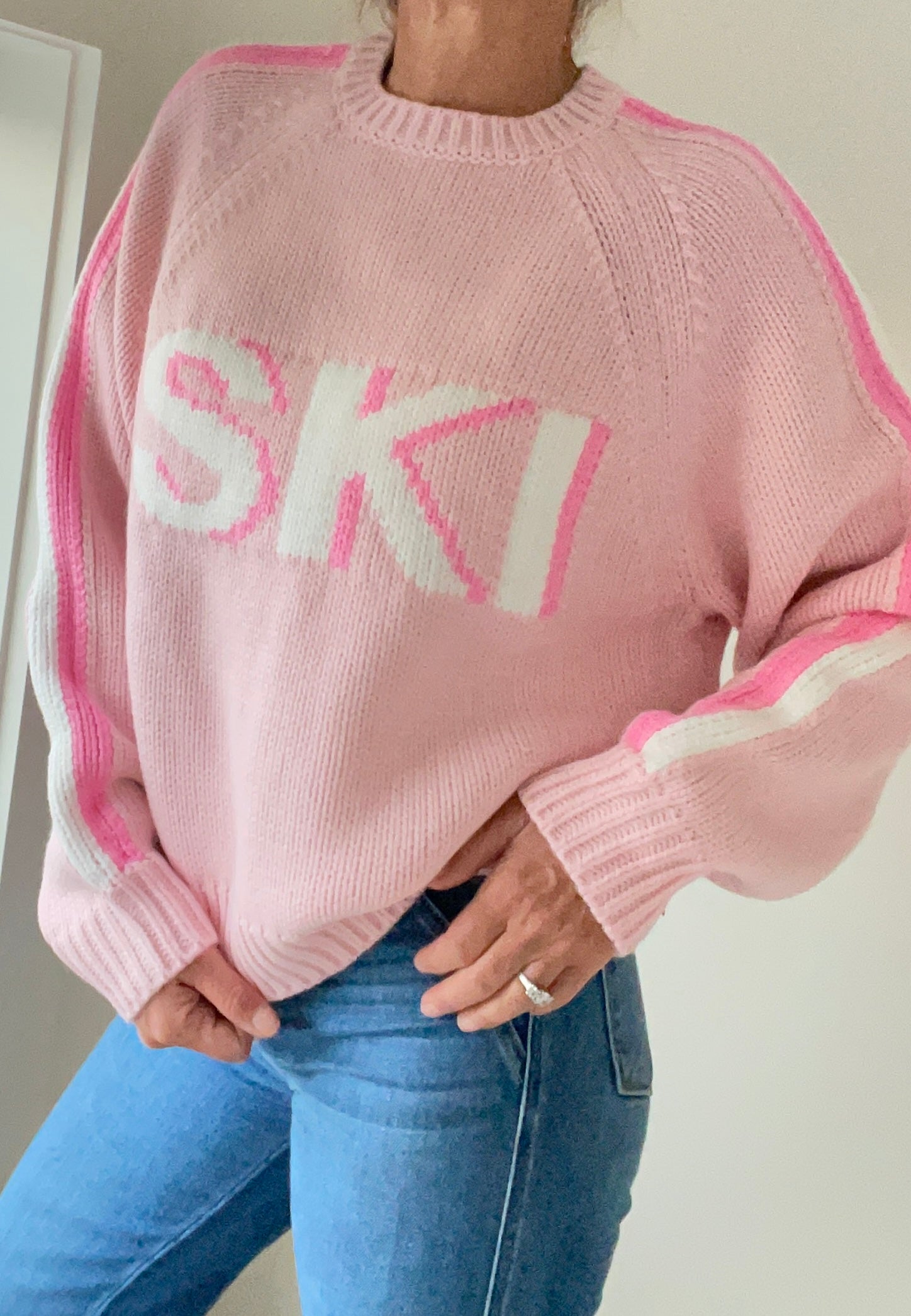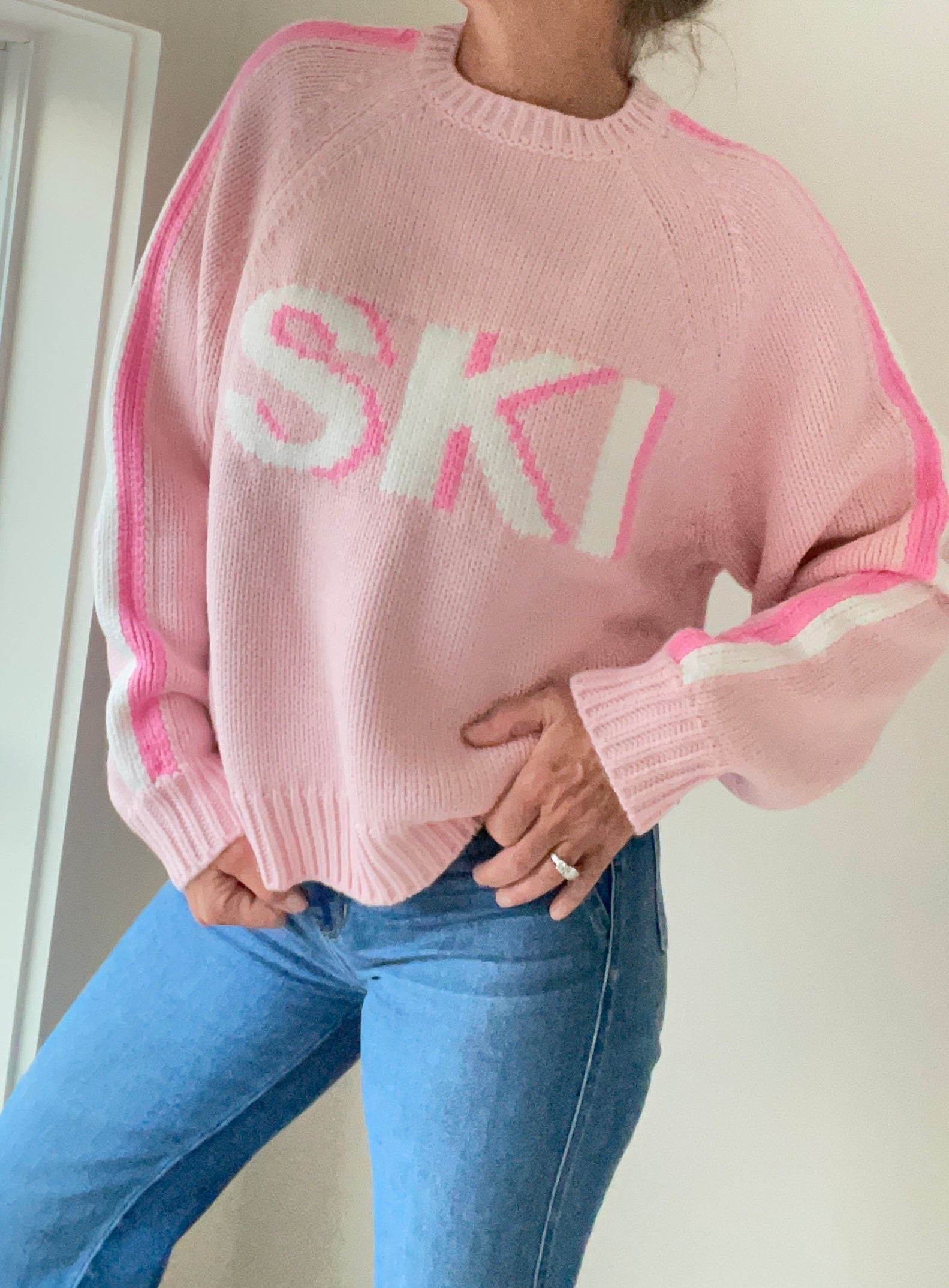 Classic raglan acrylic crew with SKI knit on the Front. This carefully crafted chunky sweater is knit from a thick 100% acrylic for easy care and YEARS of wear. For sure to be a GOGO to staple all winter long.