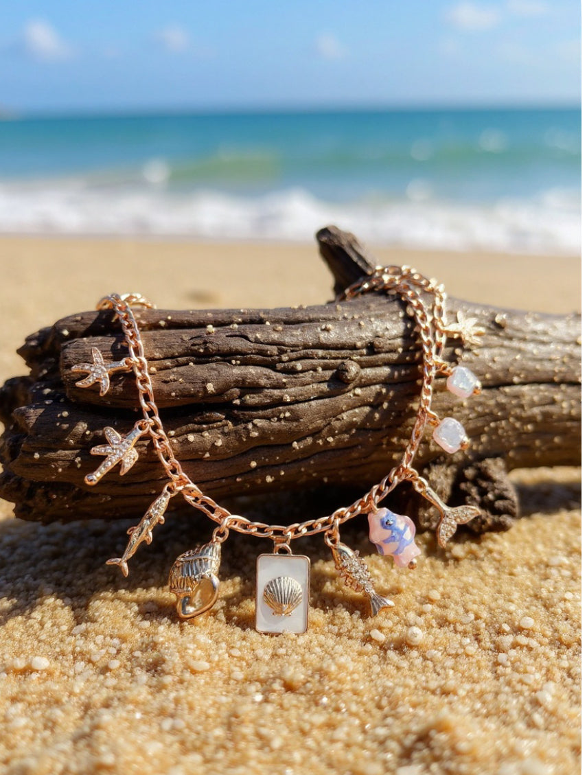 Indulge in the essence of summertime with our Coastal Beach Charm Necklace. This stunning charm necklace features five beachy charms , perfect for any beach lover.