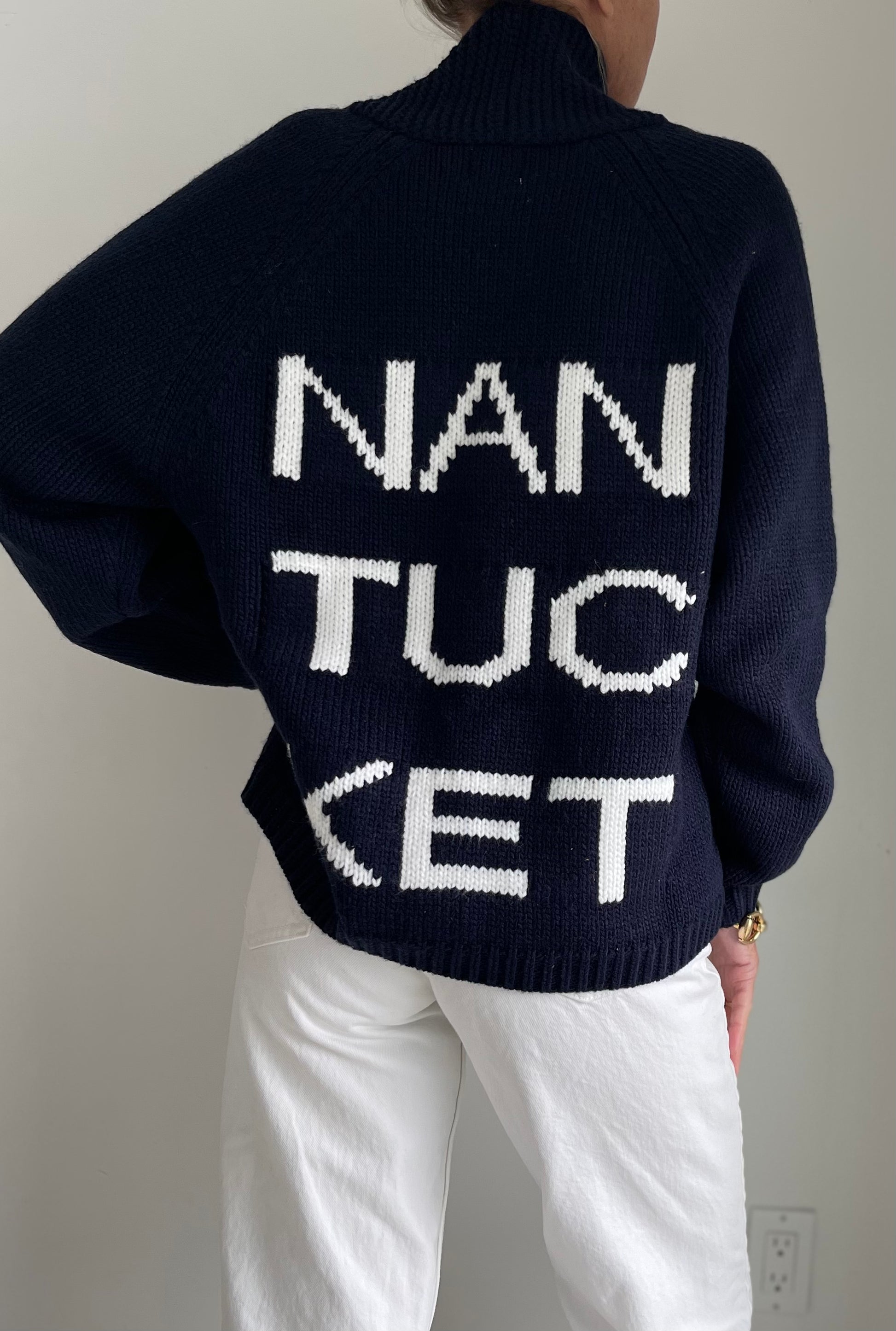 For breezy days by the sea or evenings at the festival reach for this charming cardigan - with its bold Stacked NANTUCKET motif on the back and collegiate arm stripes, it's the perfect layer to suit any season. This classic duffle cardigan is so cozy you’ll find it hard to take off, and we suggest you don’t because you just may lose it to your bff!!