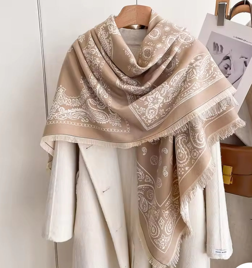 Elegant Bloom, weave bandana shawl scarf Ref or Camel