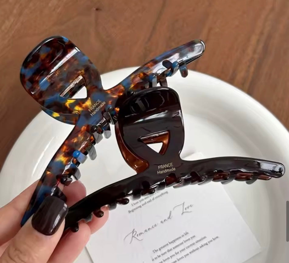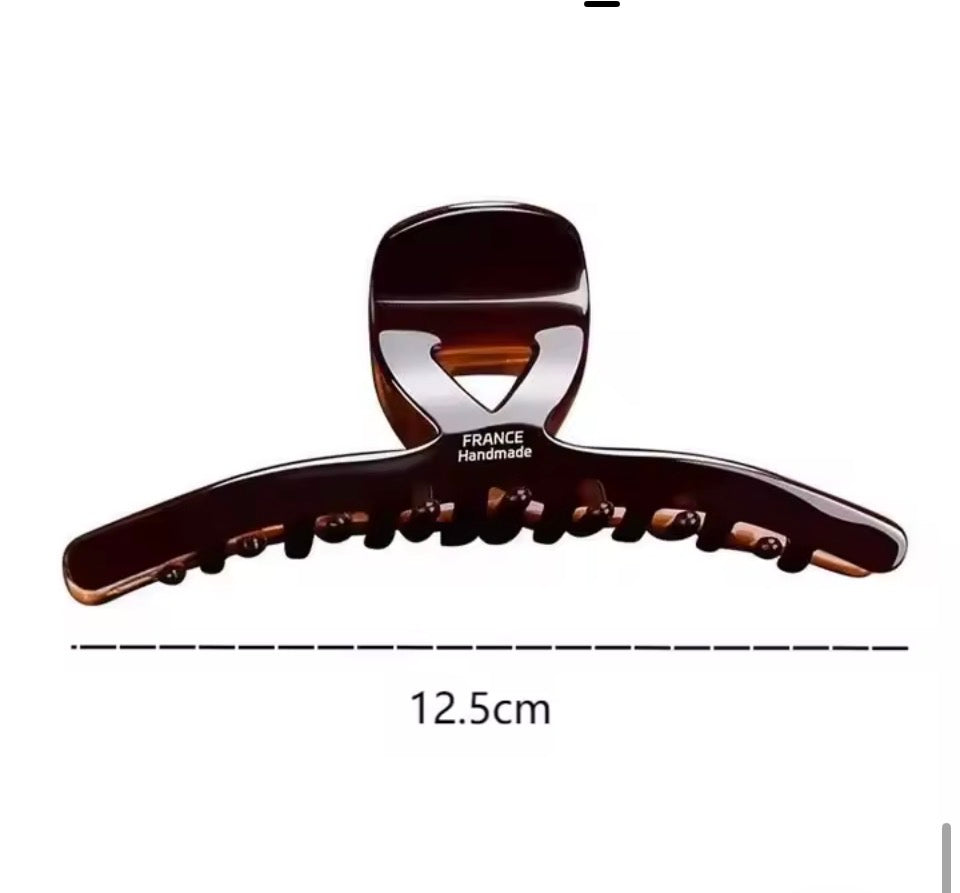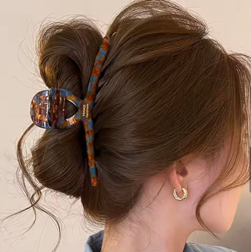 This handmade acrylic hair claw clip features a rich tortoiseshell pattern that adds timeless elegance to your hairstyle. Crafted with a smooth, curved silhouette, it offers a comfortable and secure grip for all hair types. The sturdy metal spring ensures durability and a strong hold, perfect for creating effortless updos or sleek half-up styles. A versatile