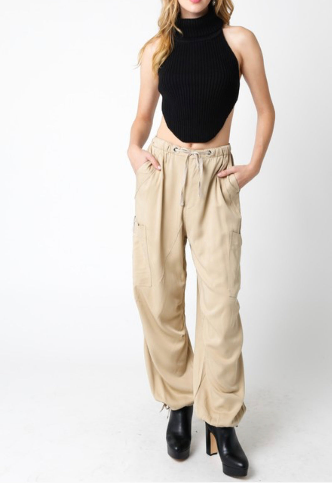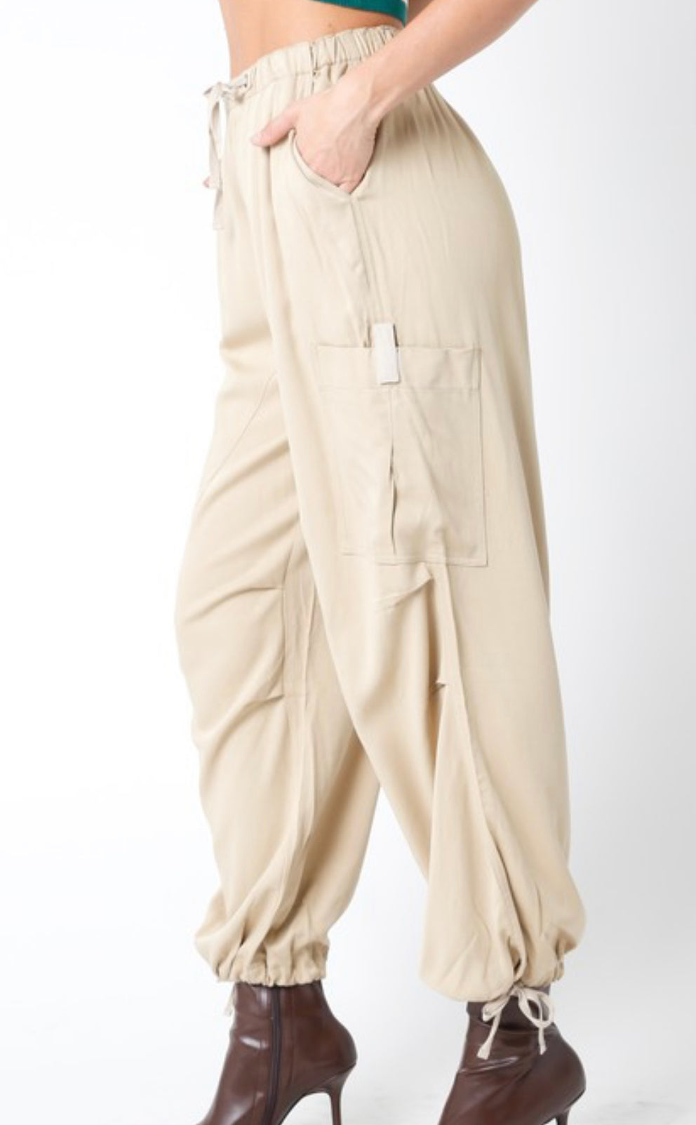 The Hadley Chute Pants feature a drawstring waist and a hem adjustable bungee.