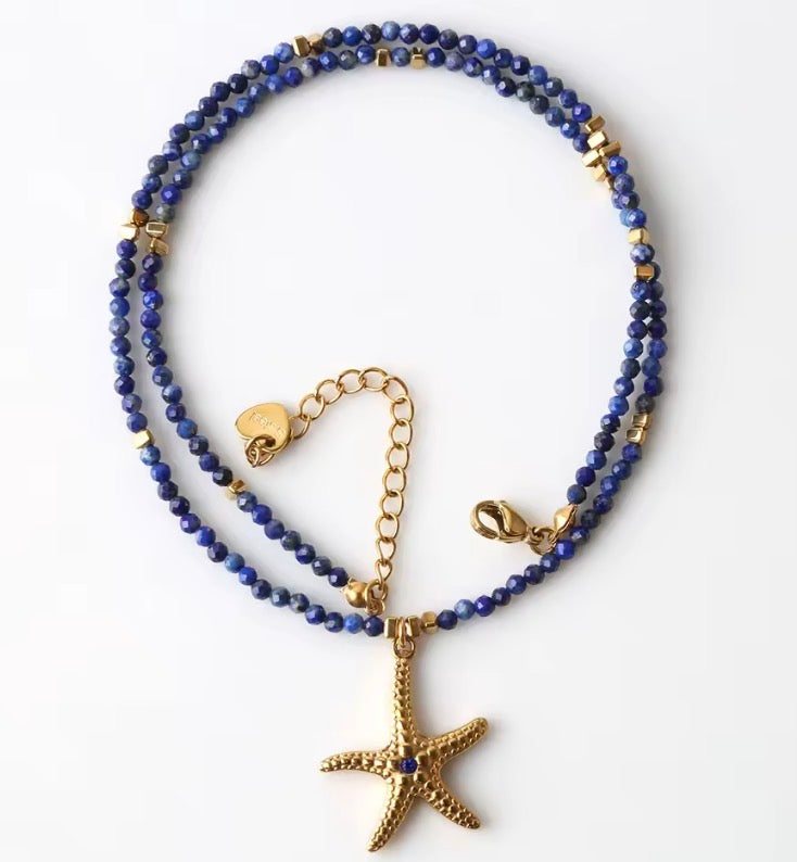 Indigo beaded Starfish necklace