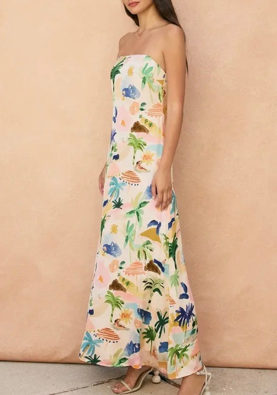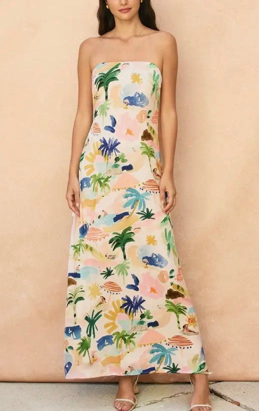 The Isla Bonita dress encapsulates an eclectic mix of conversational watercolor patterns and colors, making it a standout piece. Perfect for both casual outings and special occasions, this dress features a flowing slimming silhouette. The lightweight fabric ensures comfort and easy movement, while the eye-catching print adds a touch of fun and uniqueness. Versatile and stylish, it pairs effortlessly with sandals or heels for a complete look.