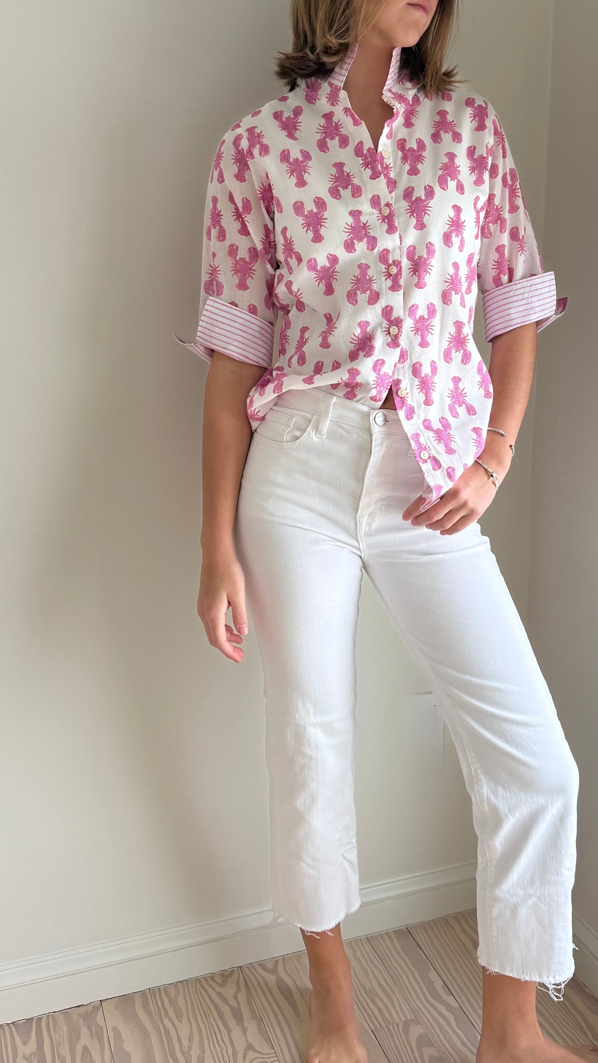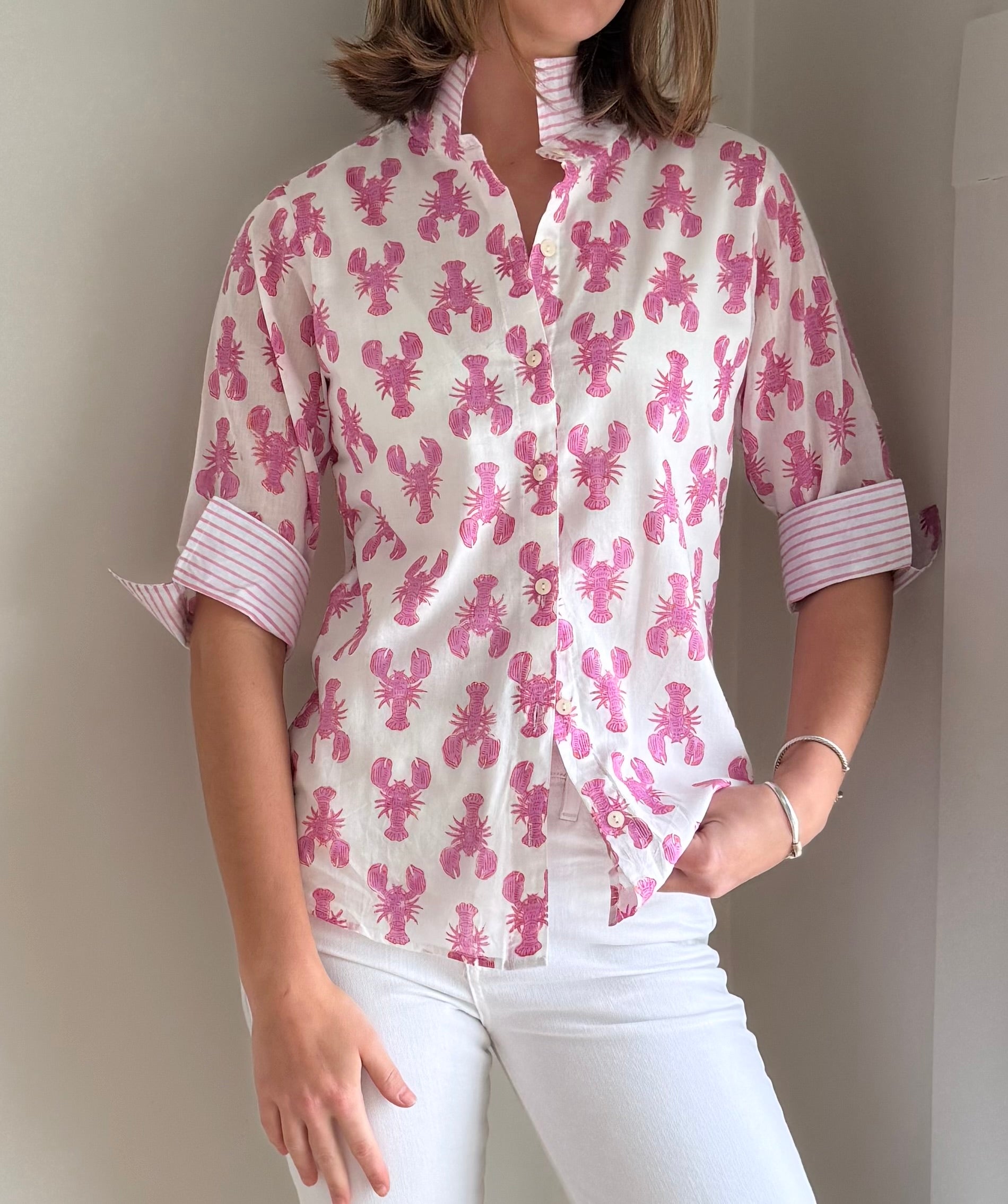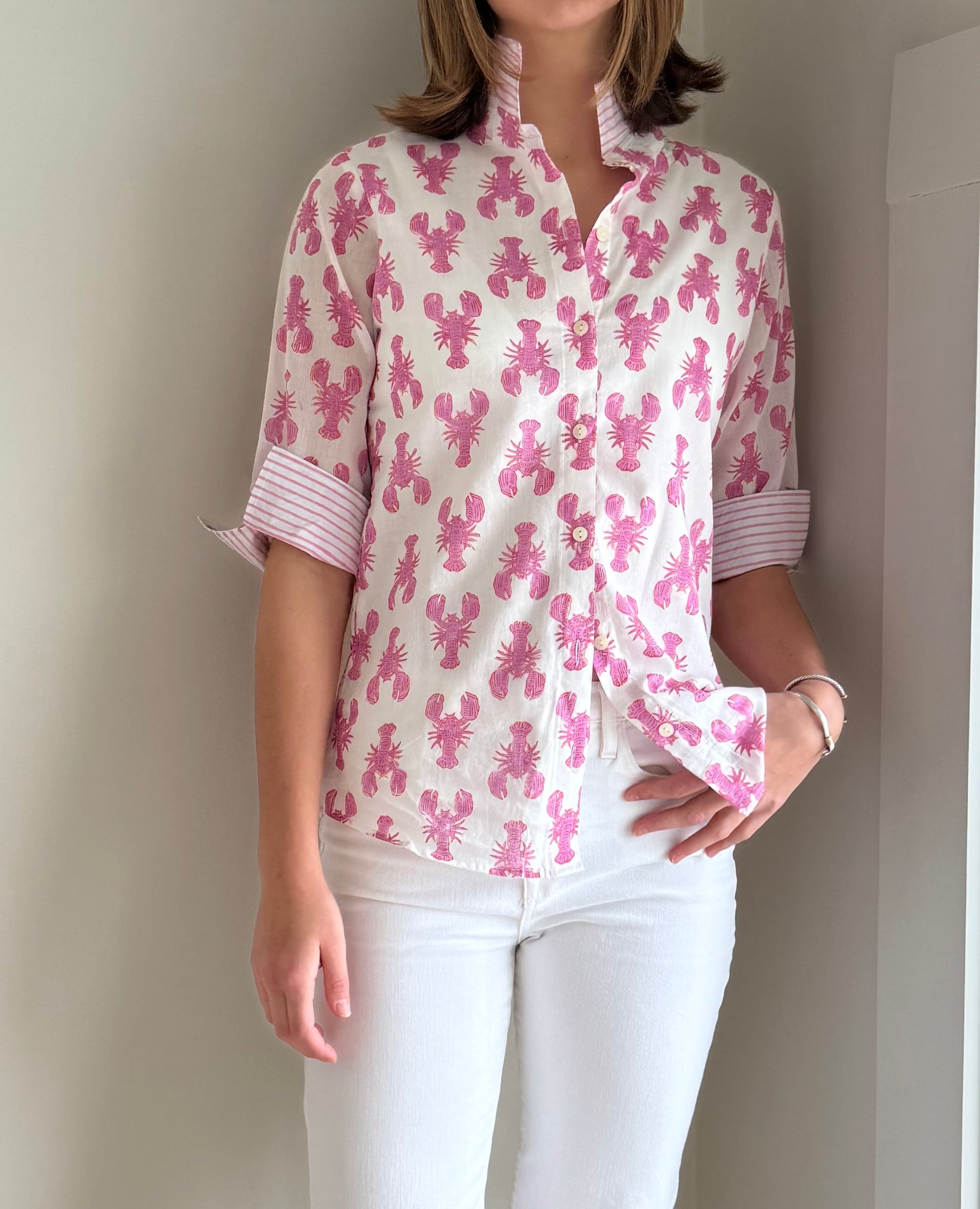 3/4 Sleeve Cotton Pink Lobster Print Blouse