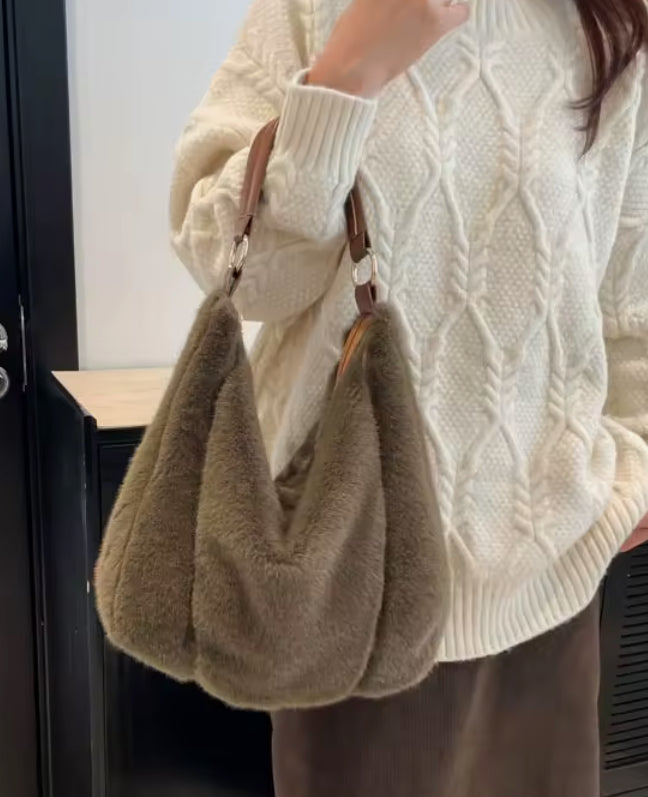 Large capacity, shoulder style, plush soft bag