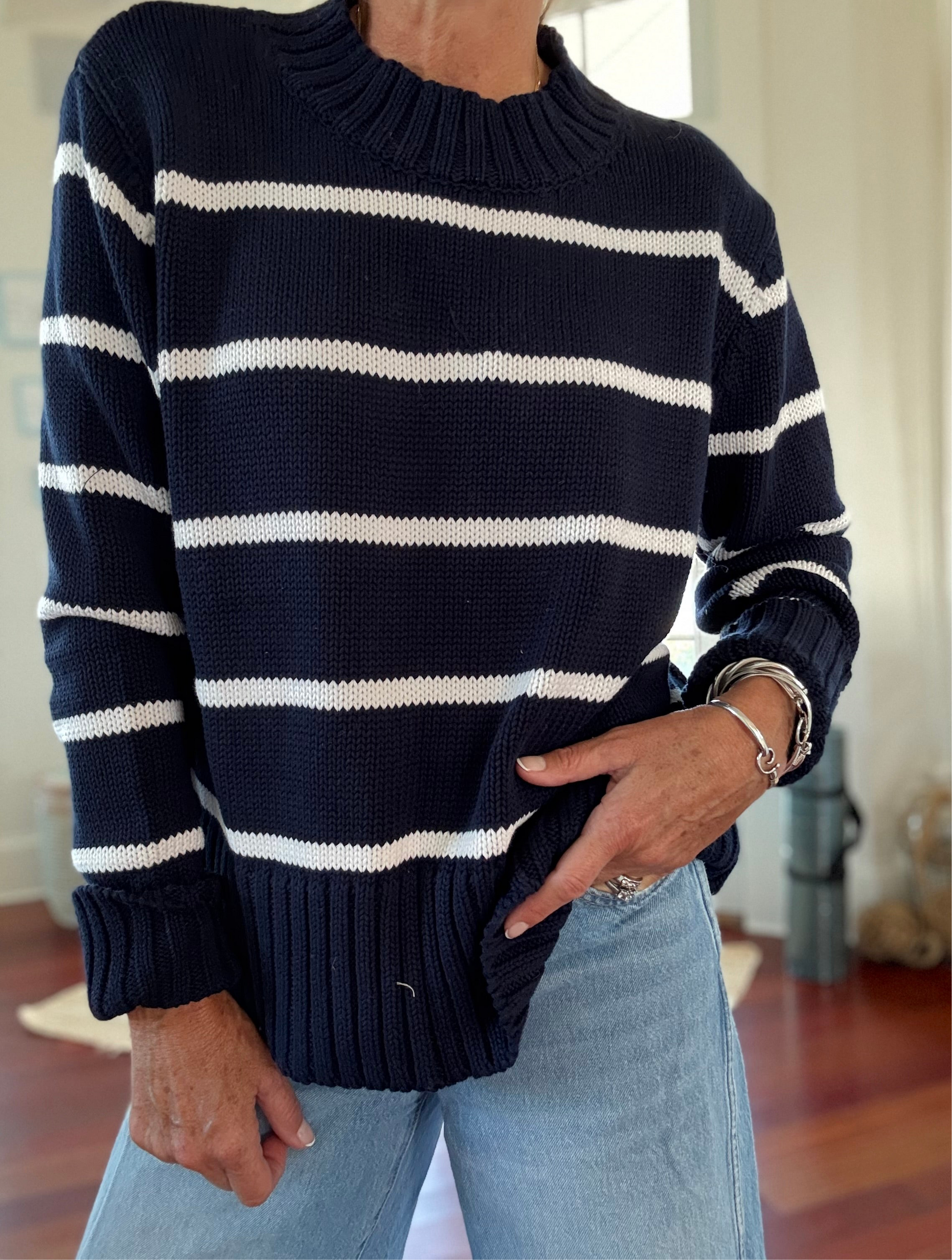 LENA Cotton Sweater in Mini Stripe Navy/White