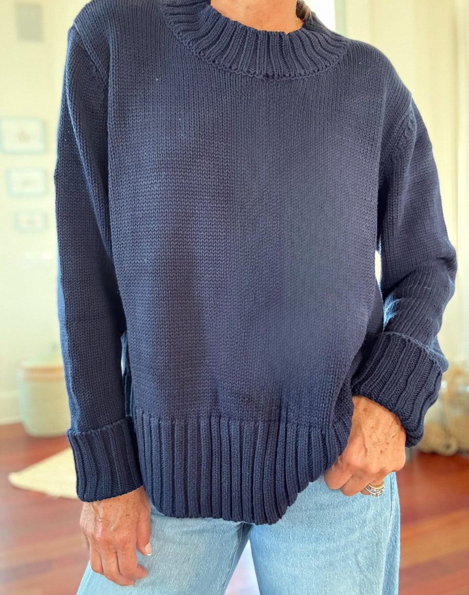 LENA Cotton Sweater in Solid Navy