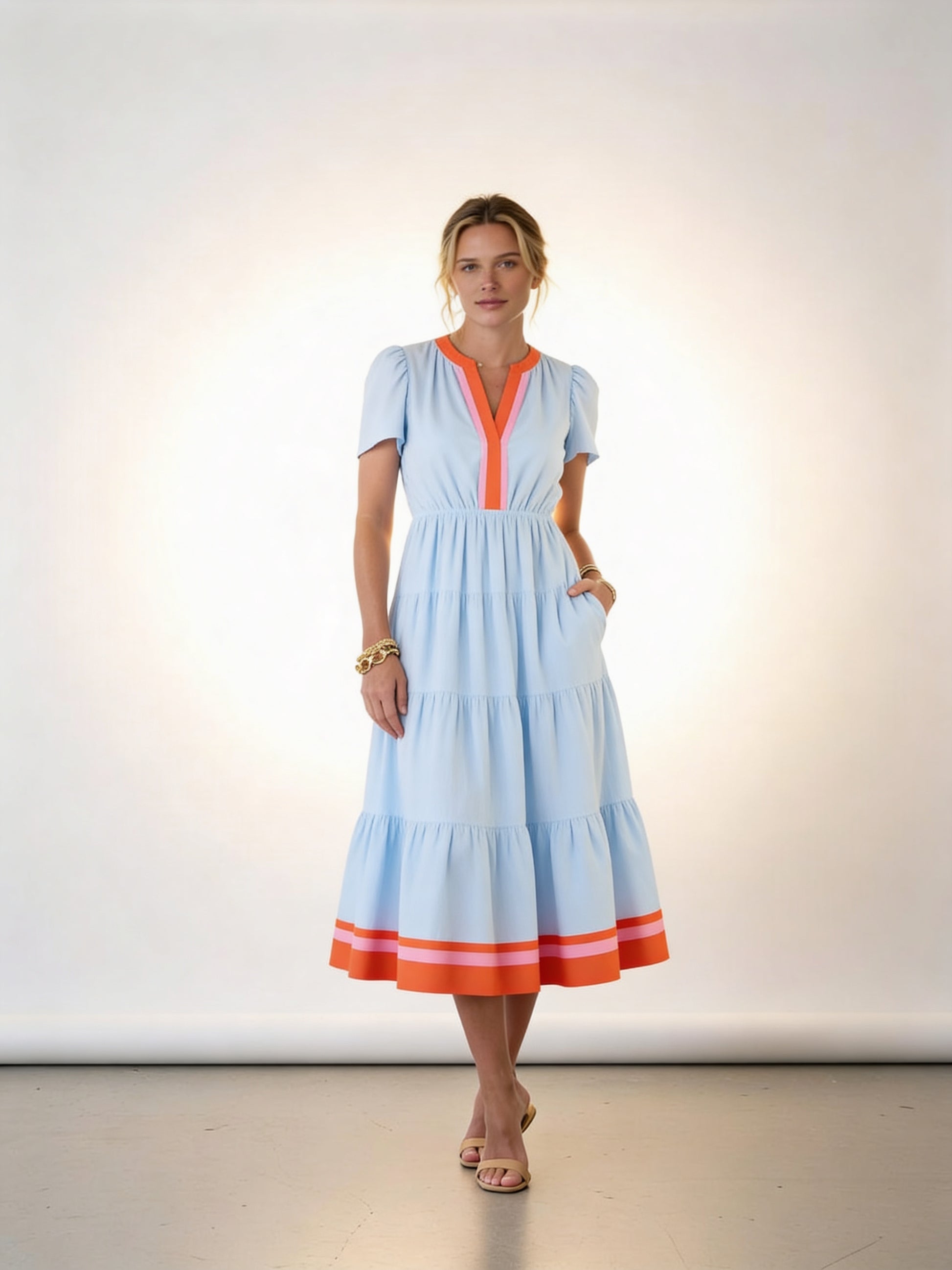 The Lilian is classic femininity while edging on the side of flirty, bohemian, and playful. Through vibrant bold blocking on a classic pinstripe, tiered silhouette and puff sleeves, the Lillian Dress is sure to be a style you reach for time and time again. Pair with raffia heels and a clutch for an outdoor wedding, or dress down with flat sandals and a crossbody for brunch with the girls. No matter how you style it, this chic maxi is guaranteed to gather compliments!