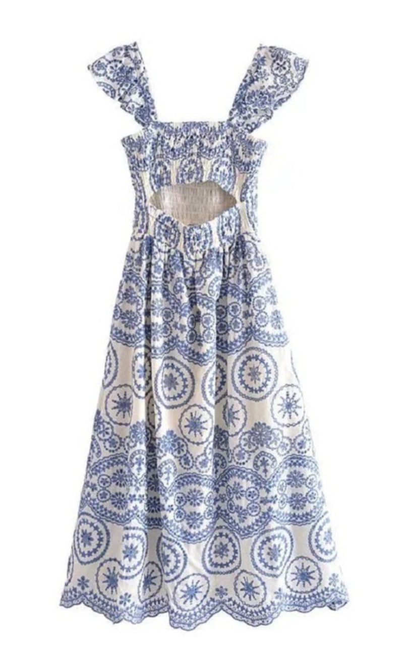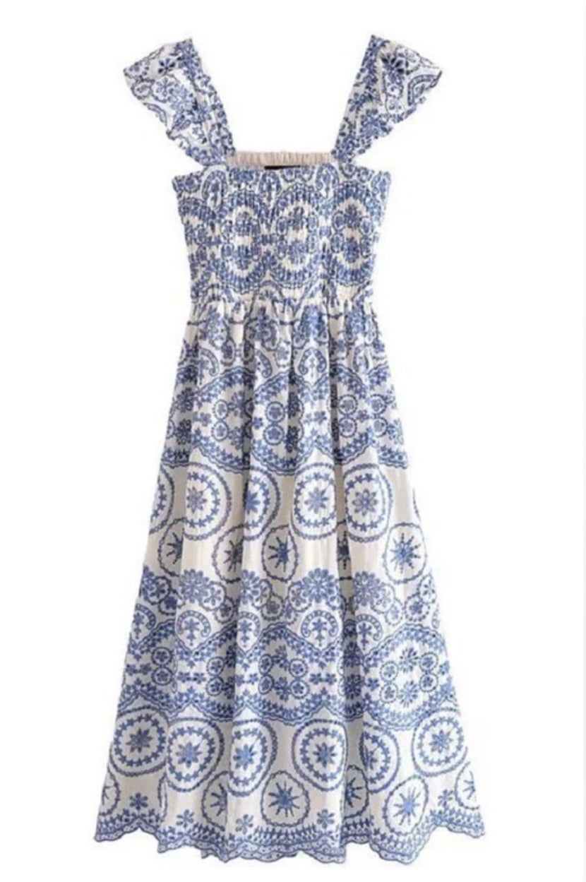 Stunning, embroidered eyelet dress in Light Blue.