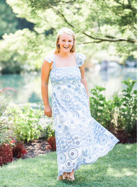 Lillyanne Eyelet Dress in Blue