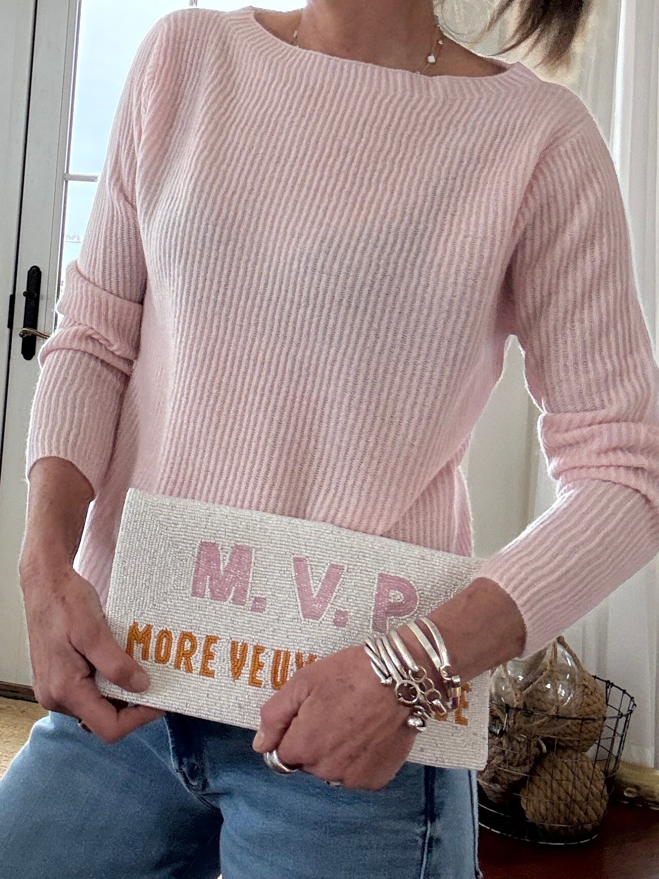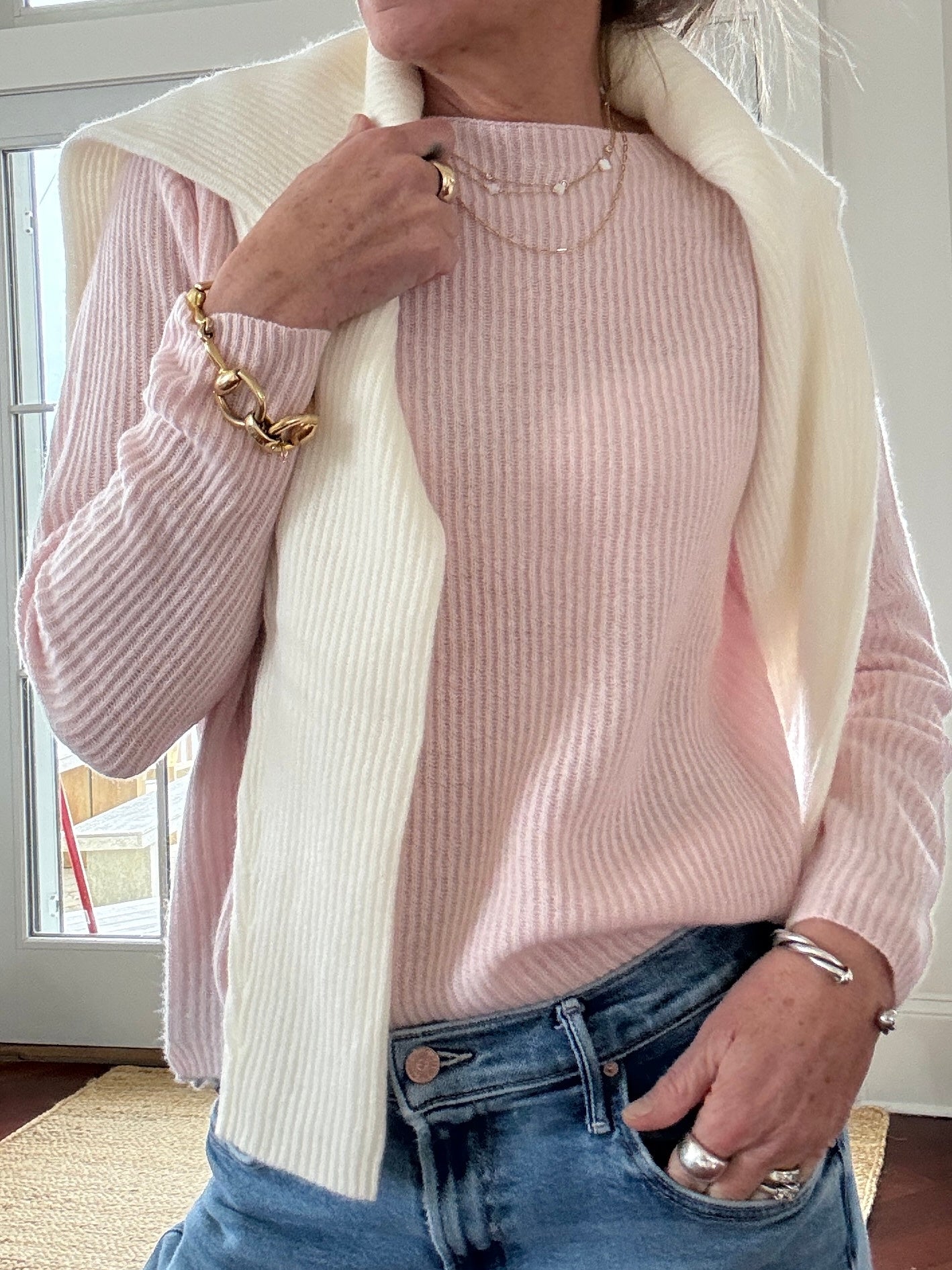 Mariner 100% Cashmere Boatneck Sweater in Soft Pink