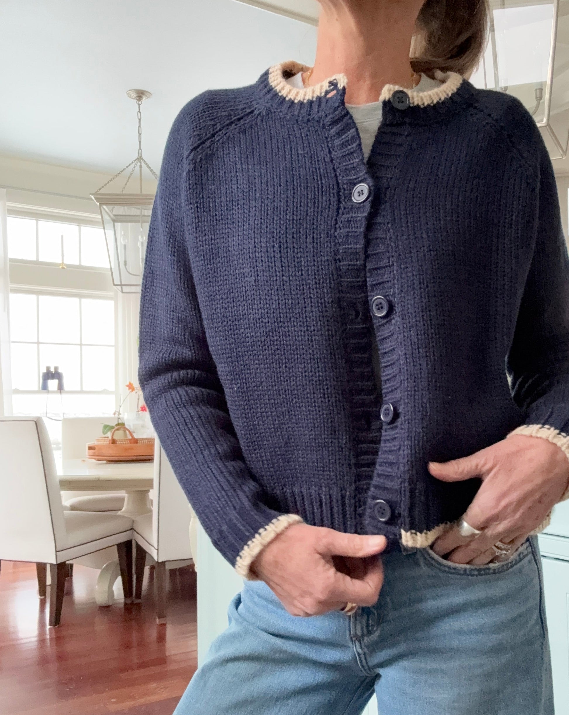 This navy cardigan features charming sailboat detailing, a soft knit hand-feel, and an easy, flattering fit. Finished with a button-front closure, it's perfect for layering over tees, shirts, or dresses from season to season. Effortlessly polished, endlessly wearable — a true coastal classic.