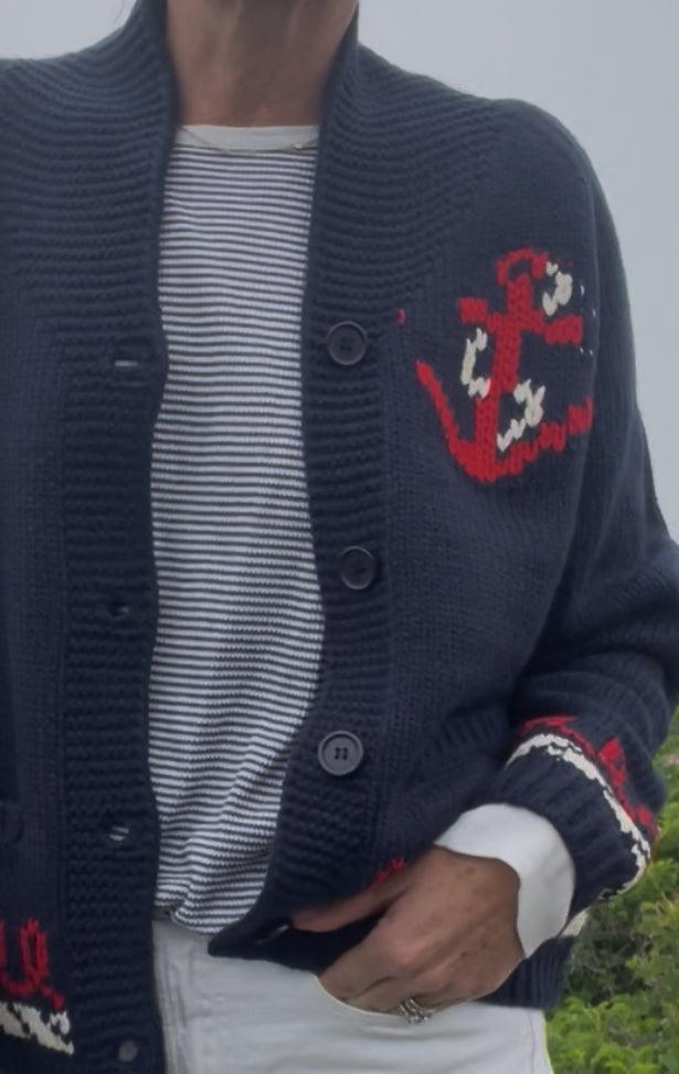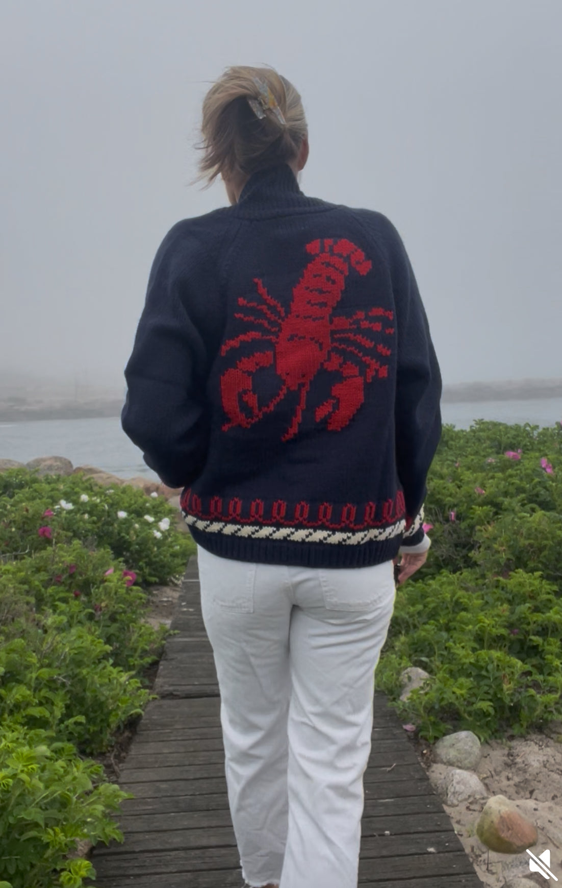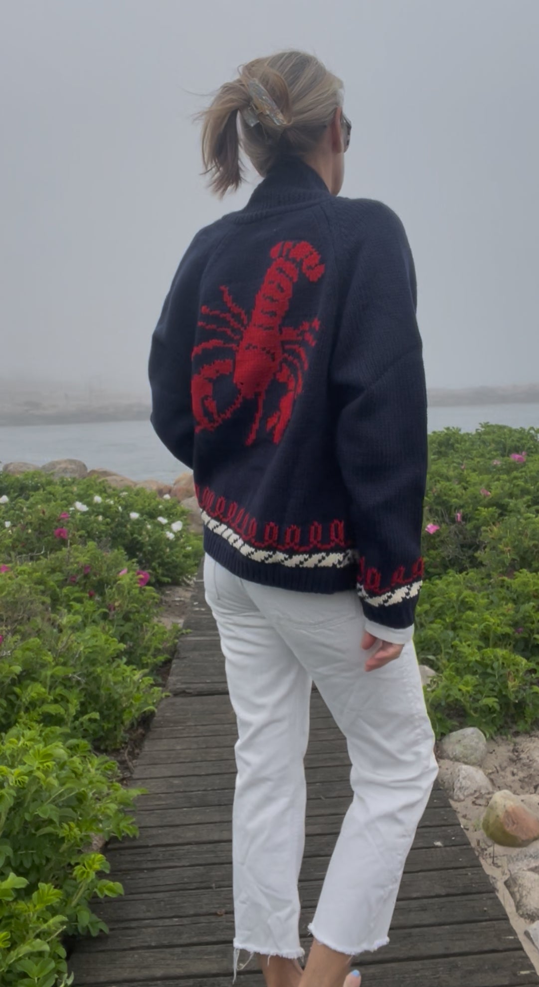 Lobster Varsity Cardigan with Vintage Trim in Navy/Red