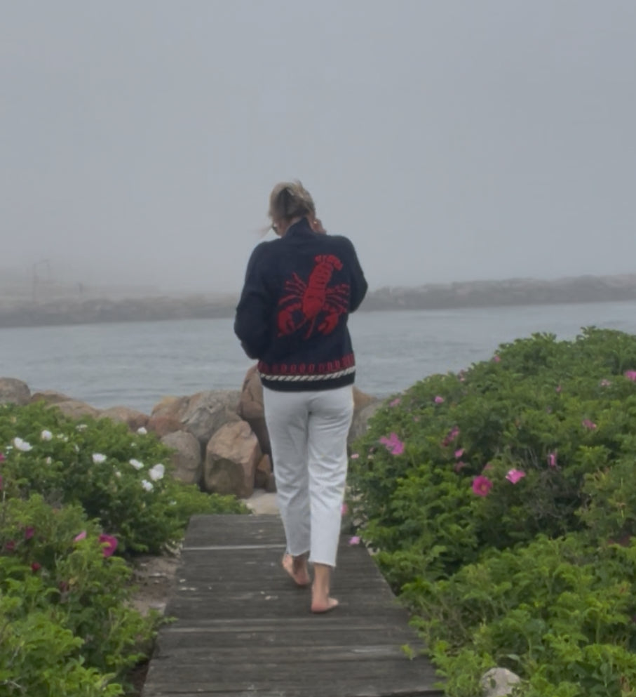 Dive into the warmth of our cozy Varsity Cardigan and make a statement at your next summer lobster bake! This snug duffle cardigan isn't just another layer; it's your best companion for those breezy seaside evenings and laid-back gatherings with loved ones. Crafted with love and care, the lobster motif on the back adds a playful touch to this classic piece, ensuring you stand out while staying toasty.