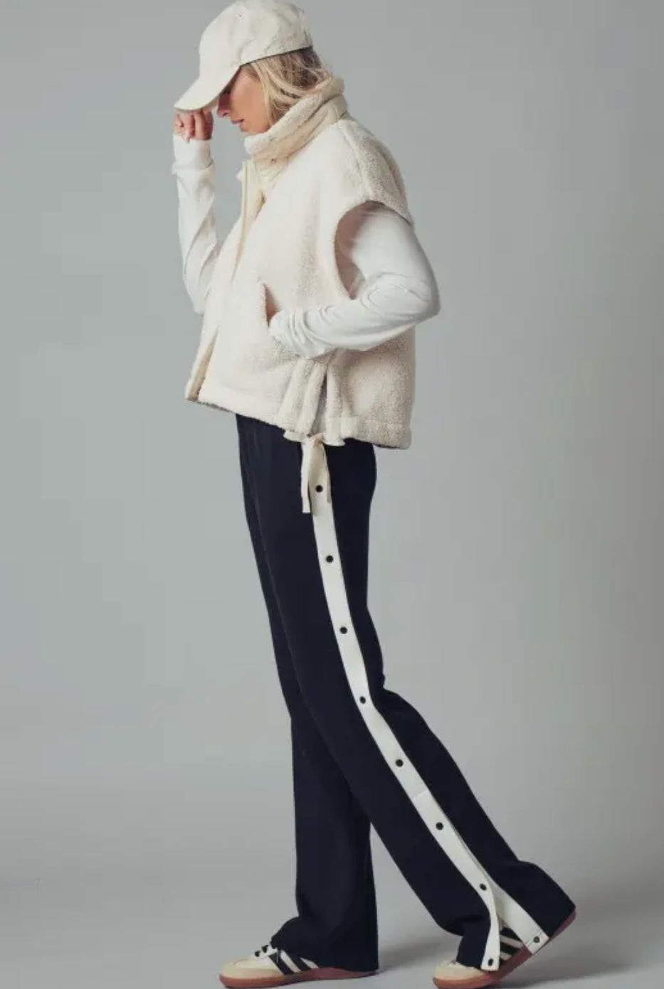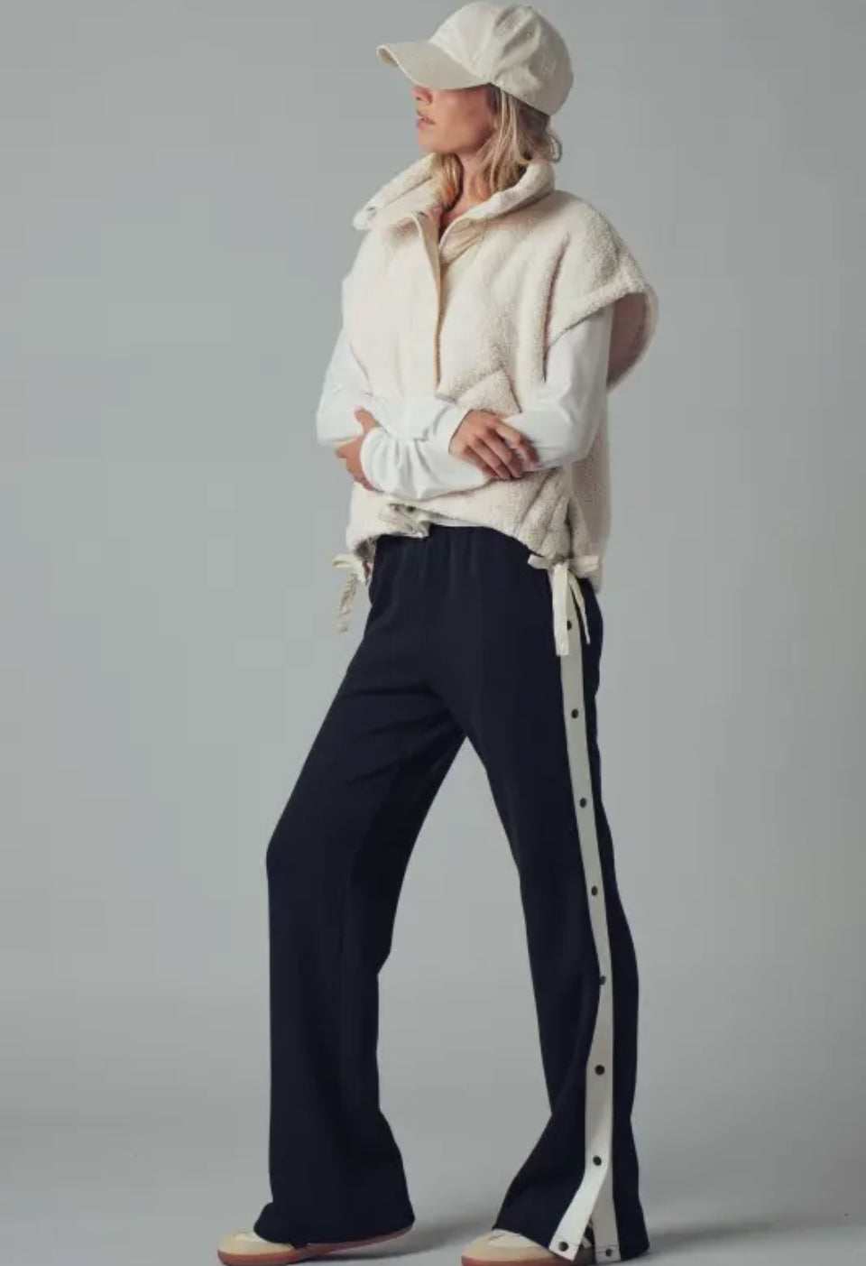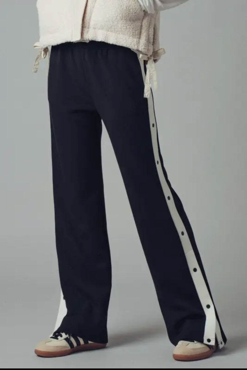 The Russo track Pants feature sleek side panel inserts and snap closures at the hem for added function and flair. Side pockets provide practical storage, while the soft elastic waistband ensures a comfortable fit that moves with you.