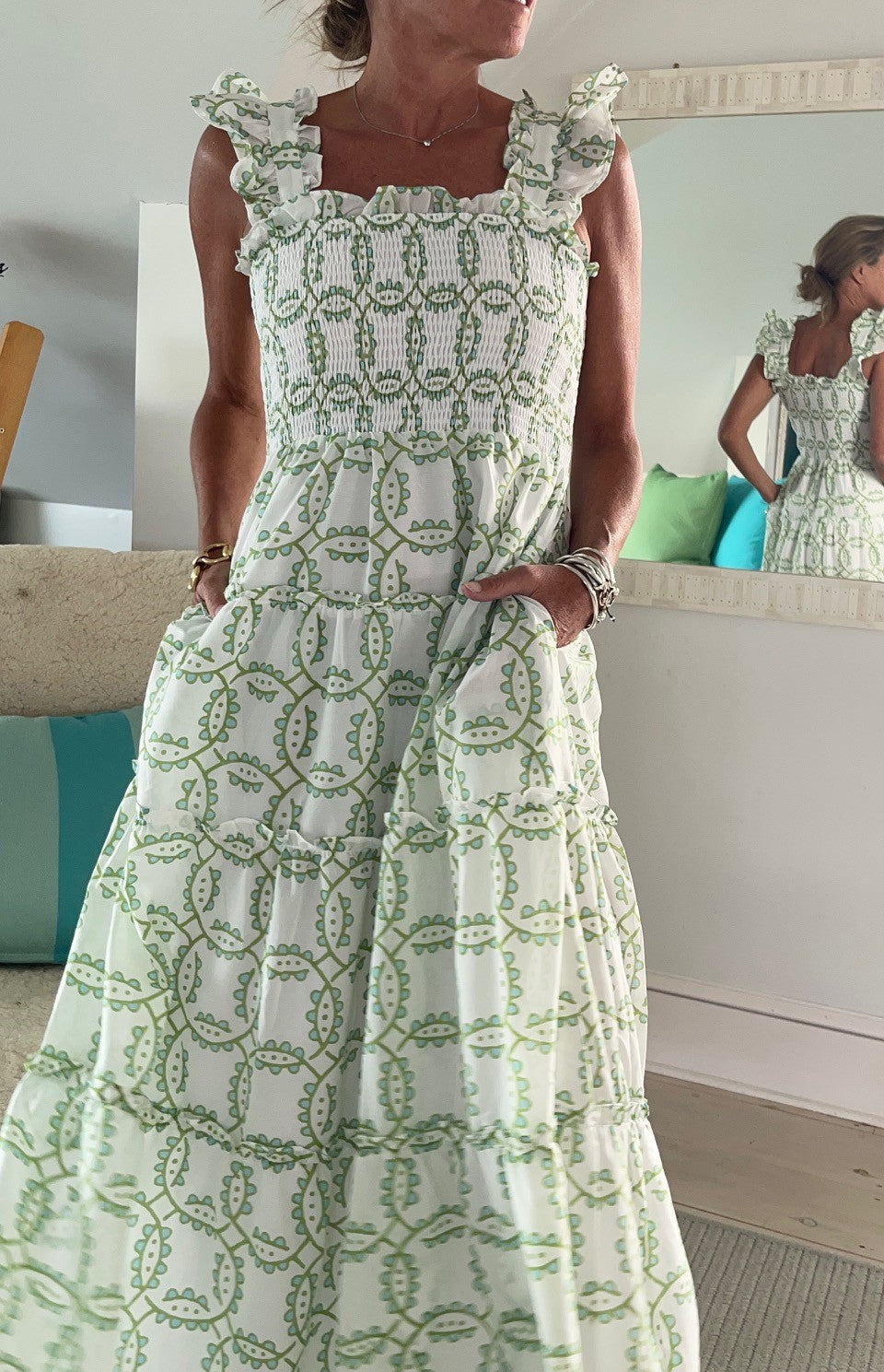 Elizabeth Smocked Ruffle Sleeve Midi Dress