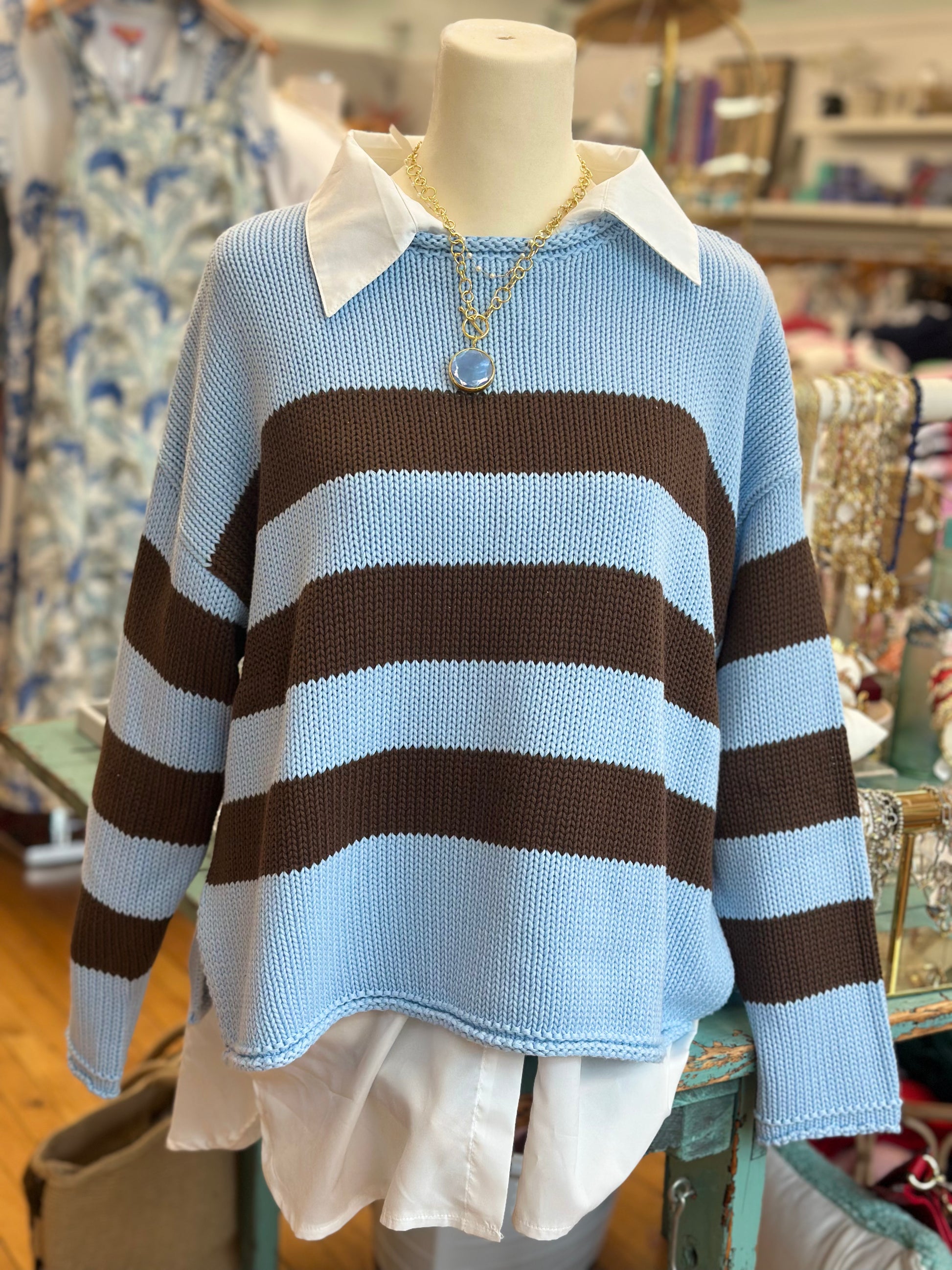 Chloe Striped Rollneck Sweater in Blue/Chocolate