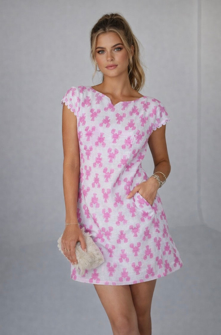 Sweet Caroline Cap Sleeve Lobster Print Dress
