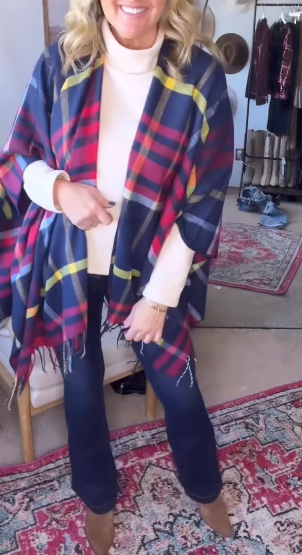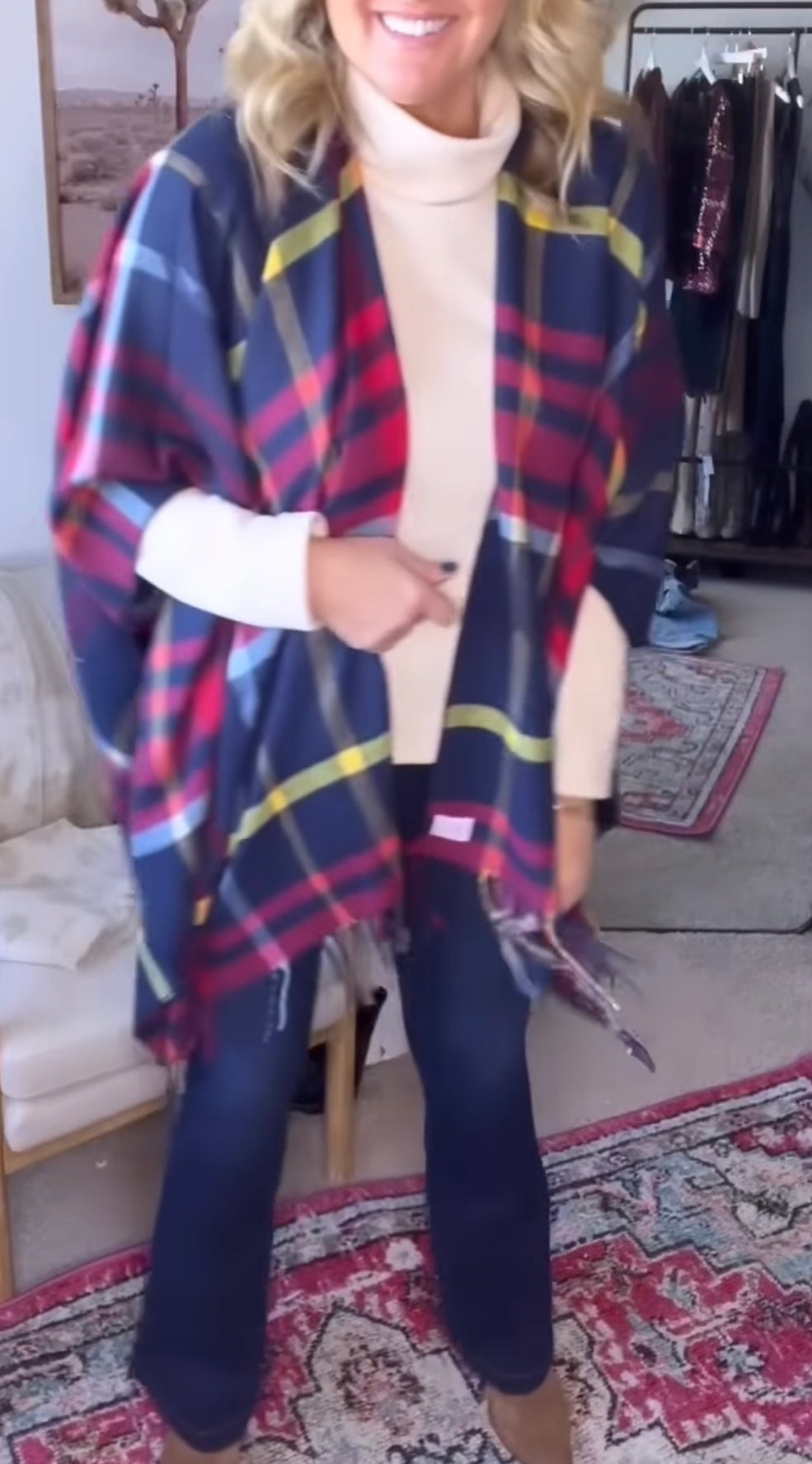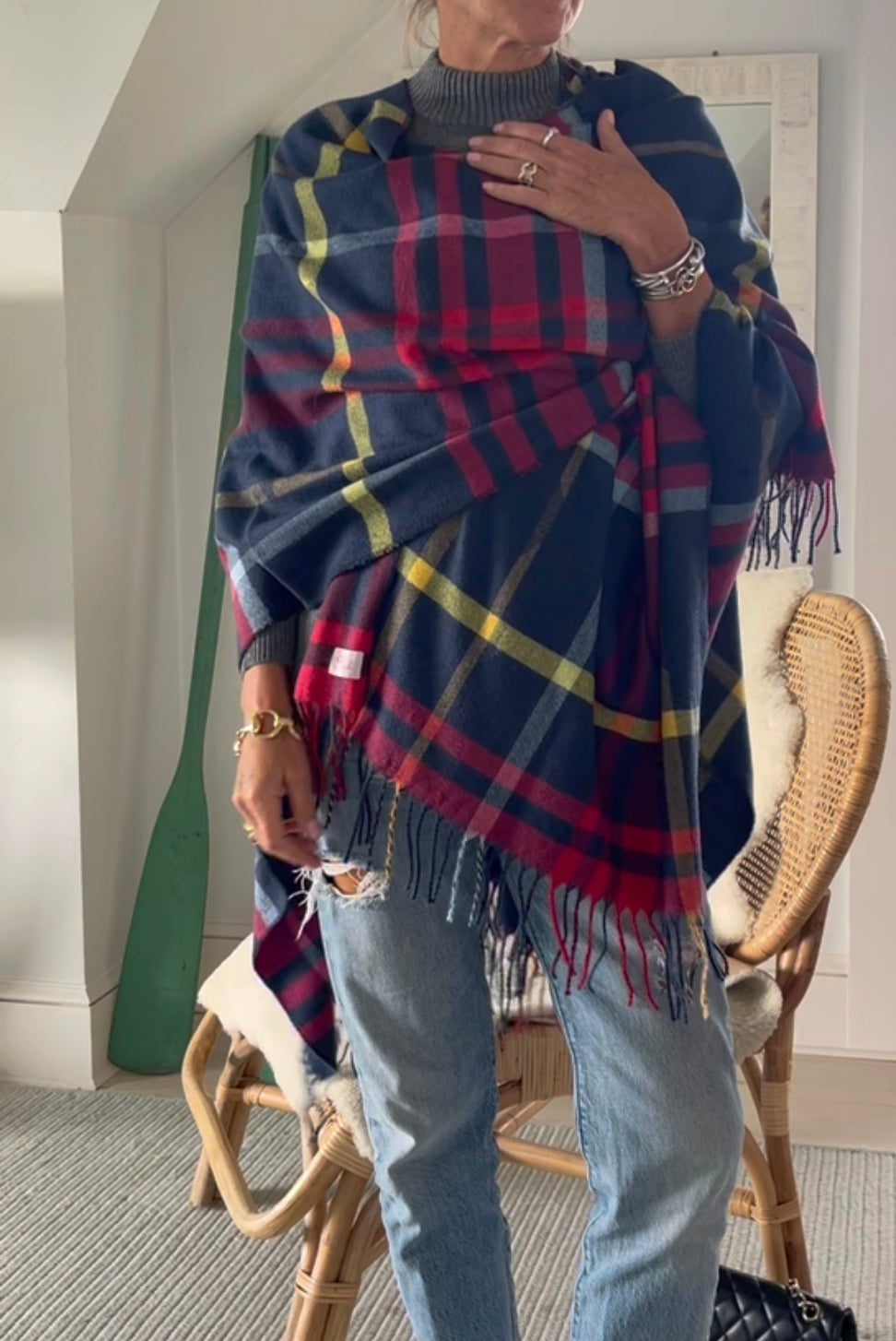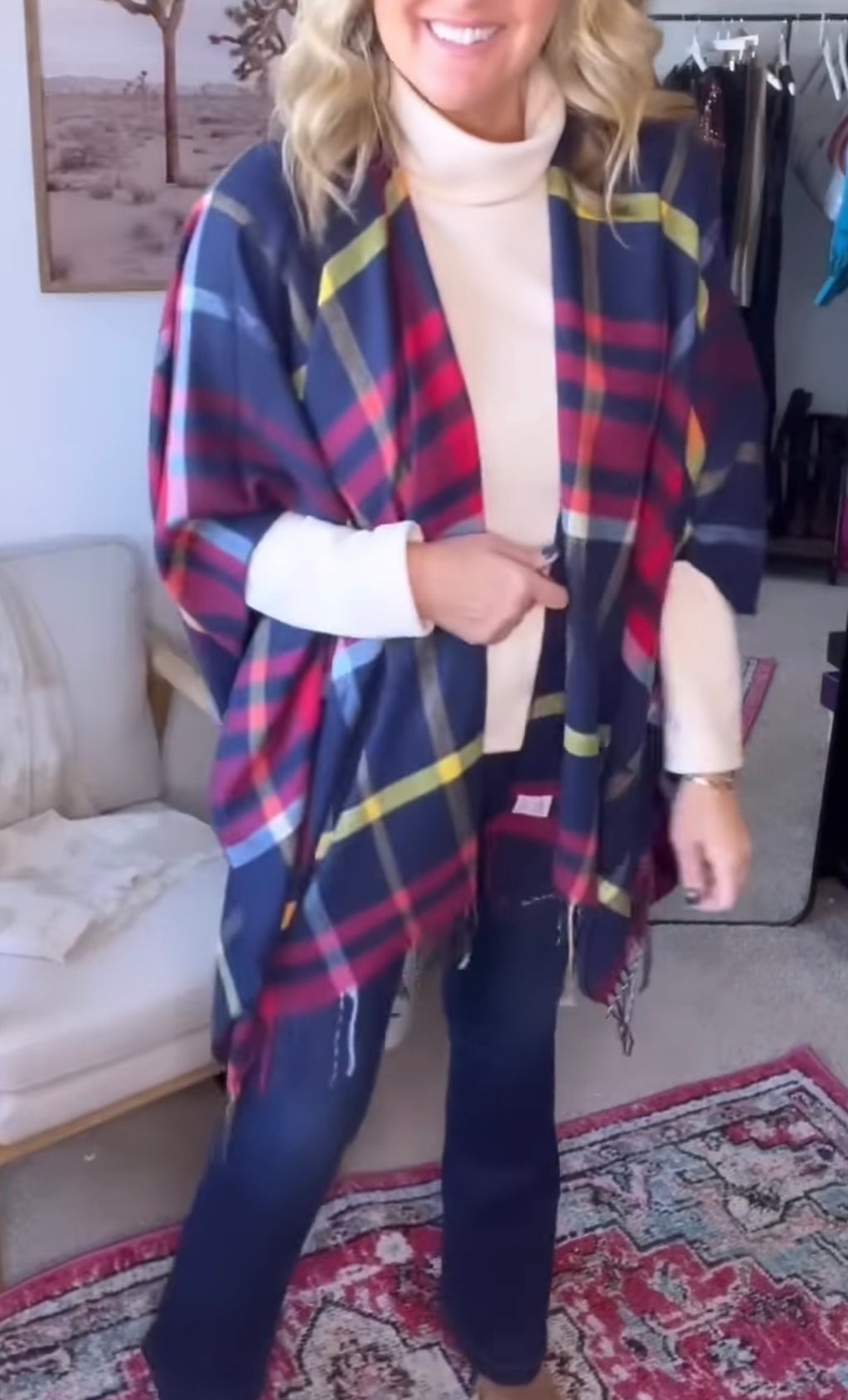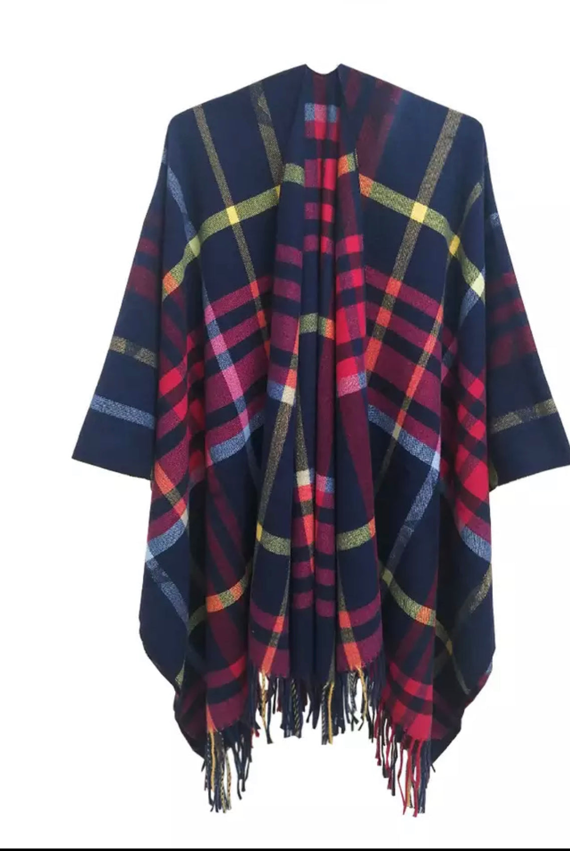 Tartan Plaid Poncho, Open Front Cape
