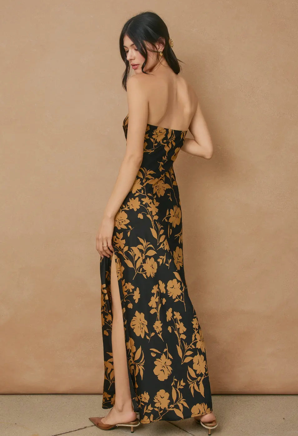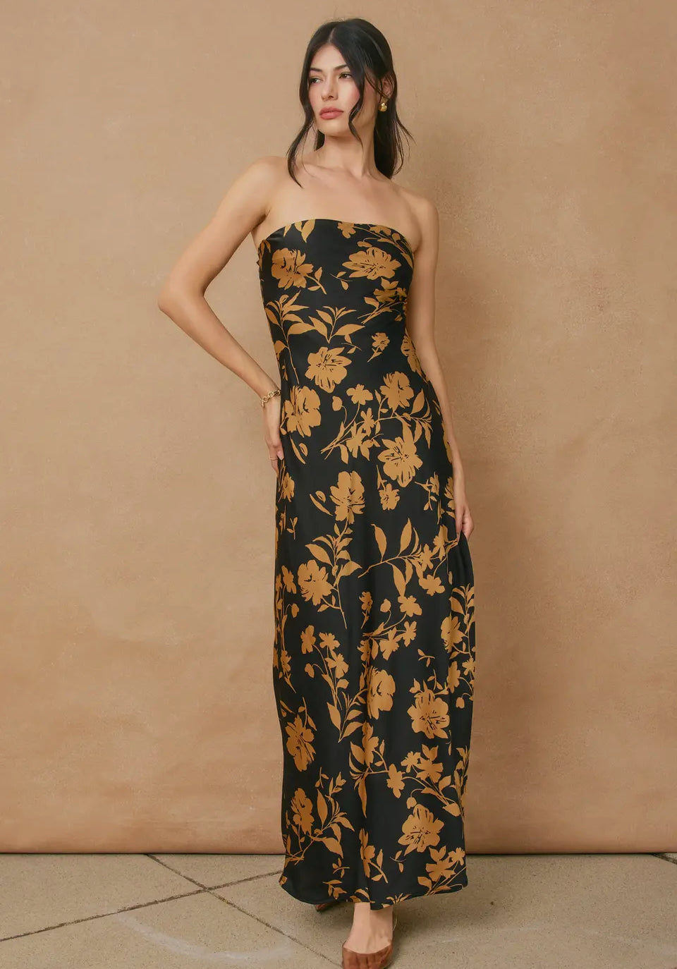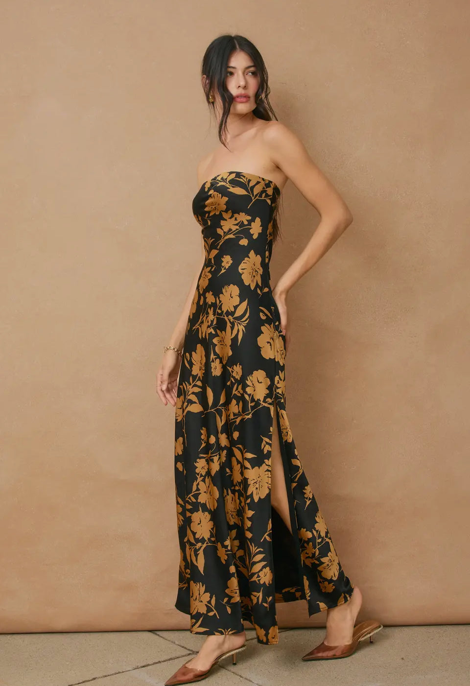 Big romance. Shop the Ellison Silk Slip Dress, a maxi strapless dress. Dress it up or dress it way up. We can be fancy when you need that.
